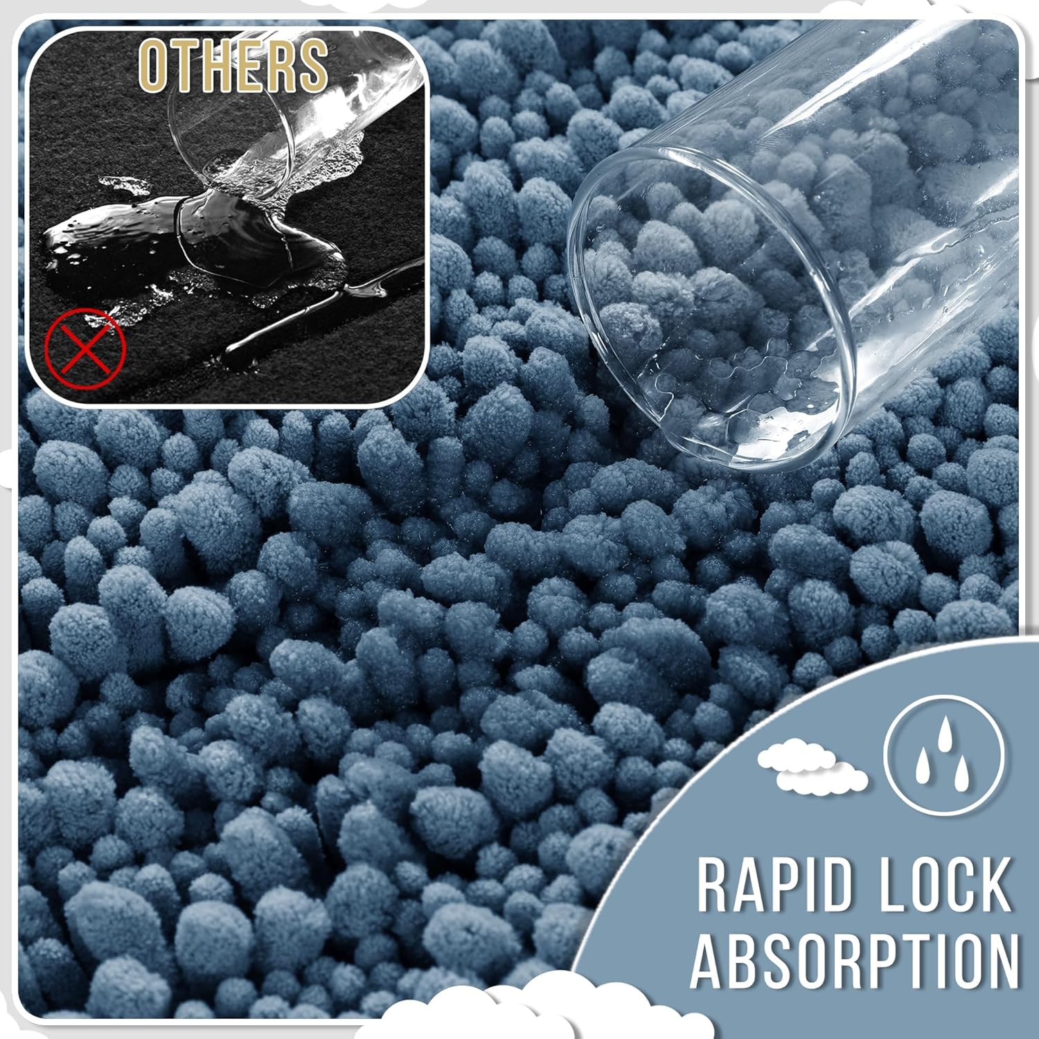 Yimobra Bathroom Rugs Non Slip Washable 32x20 Inch - Ultra Soft Absorbent Chenille Bath Mat, Quick Dry Shaggy Floor Carpet for Tub Shower, Denim Blue Home Decor Accessories