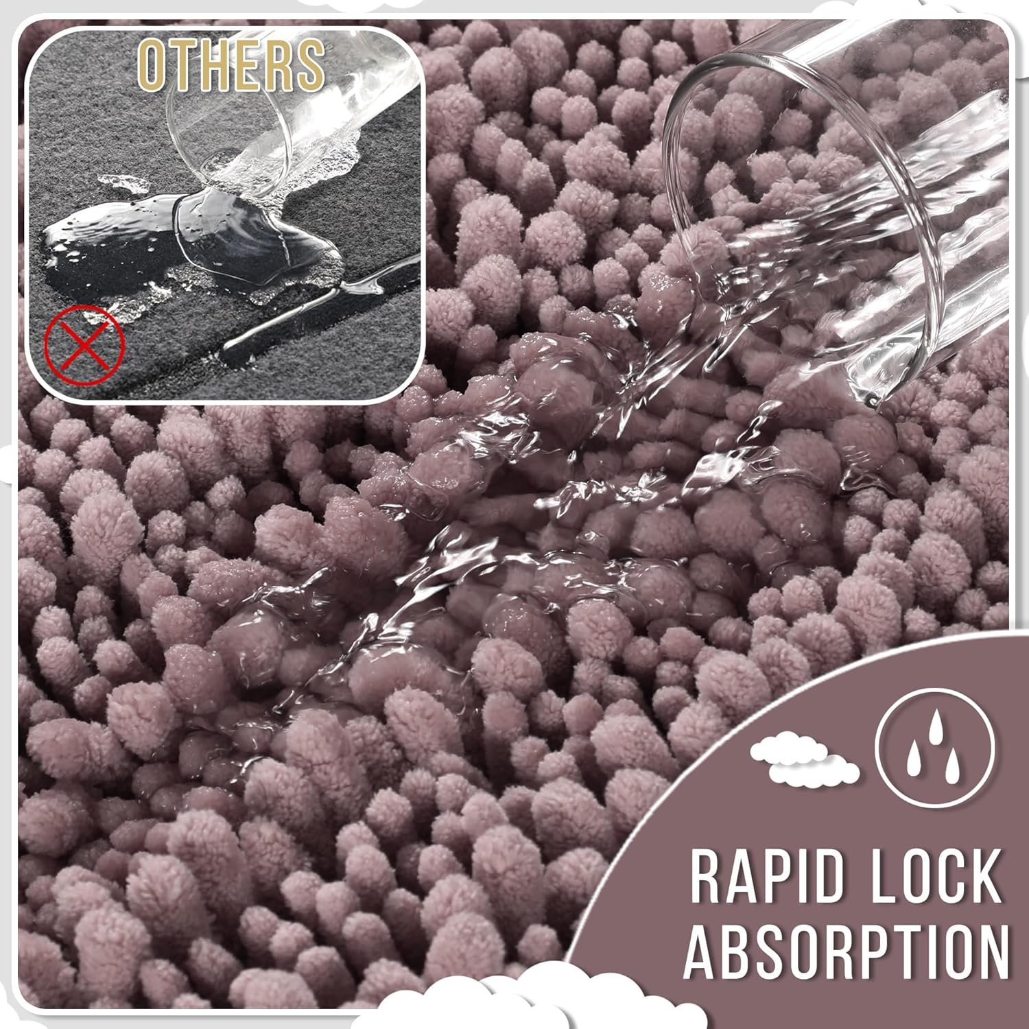 Yimobra Bathroom Rugs Non Slip Washable 24x17 Inch - Ultra Soft Absorbent Chenille Bath Mat, Quick Dry Shaggy Floor Carpet for Tub Shower, Mauve Home Decor Accessories
