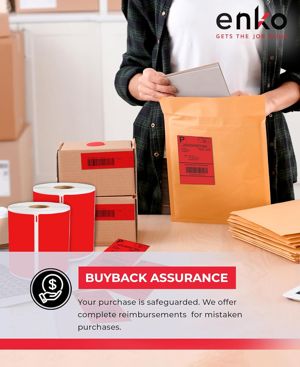 enKo Compatible Red Zebra 4x6 Label/Dymo Labels 1744907 (4 x 6) for Dymo Labelwriter 4XL Shipping Zebra Direct Thermal Printer (6 Rolls, 1320 Labels)