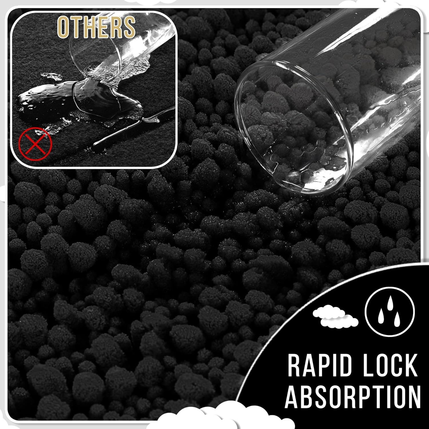 Yimobra Bathroom Runner Rug 55x24 Inch - Extra Long Non Slip Chenille Bath Mat, Soft & Absorbent, Machine Washable Shaggy Hallway Carpet for Vanity Tub Shower, Black Home Decor Accessories