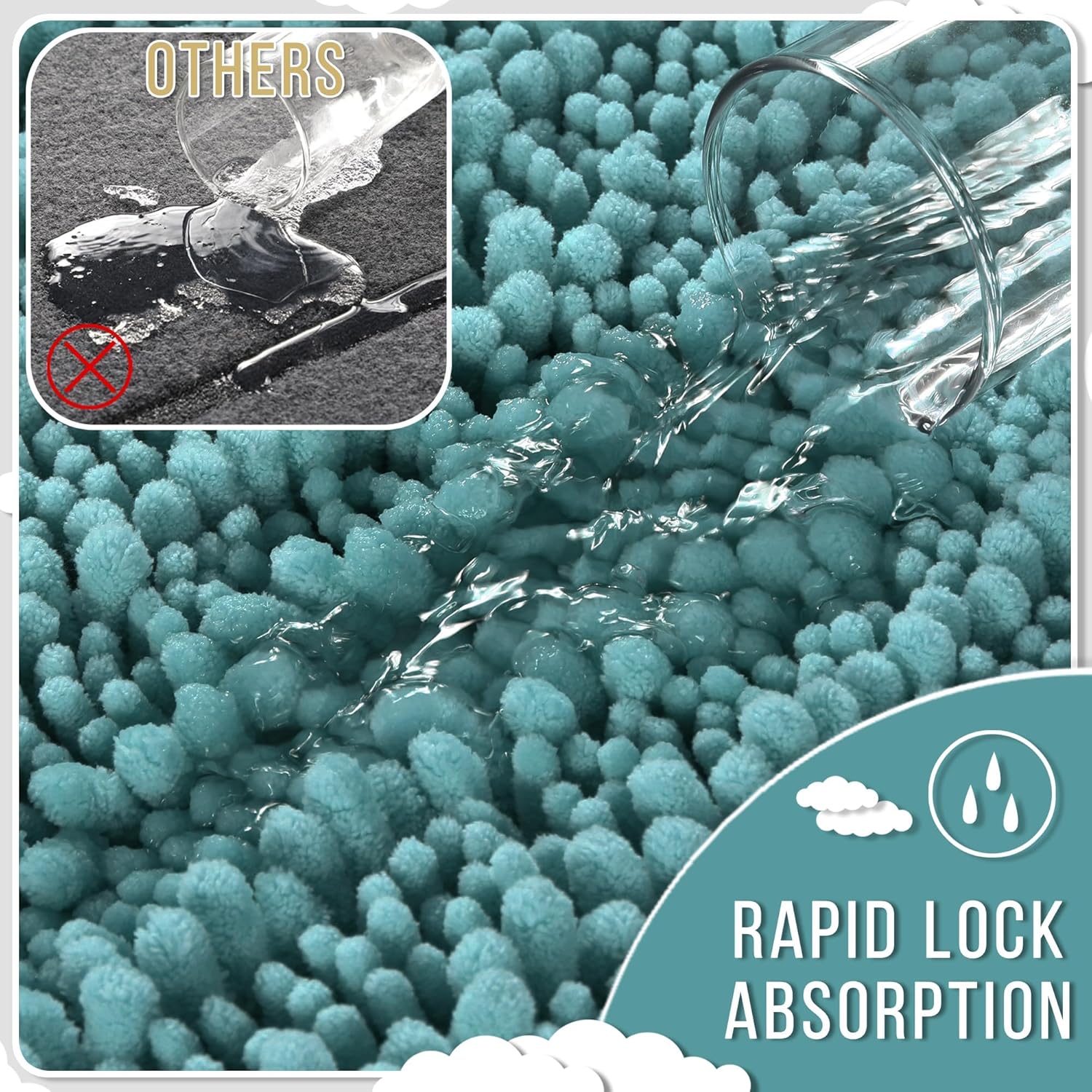 Yimobra Bathroom Runner Rug 70x24 Inch - Extra Long Non Slip Chenille Bath Mat, Soft & Absorbent, Machine Washable Shaggy Hallway Carpet for Vanity Tub Shower, Teal Blue Home Decor Accessories