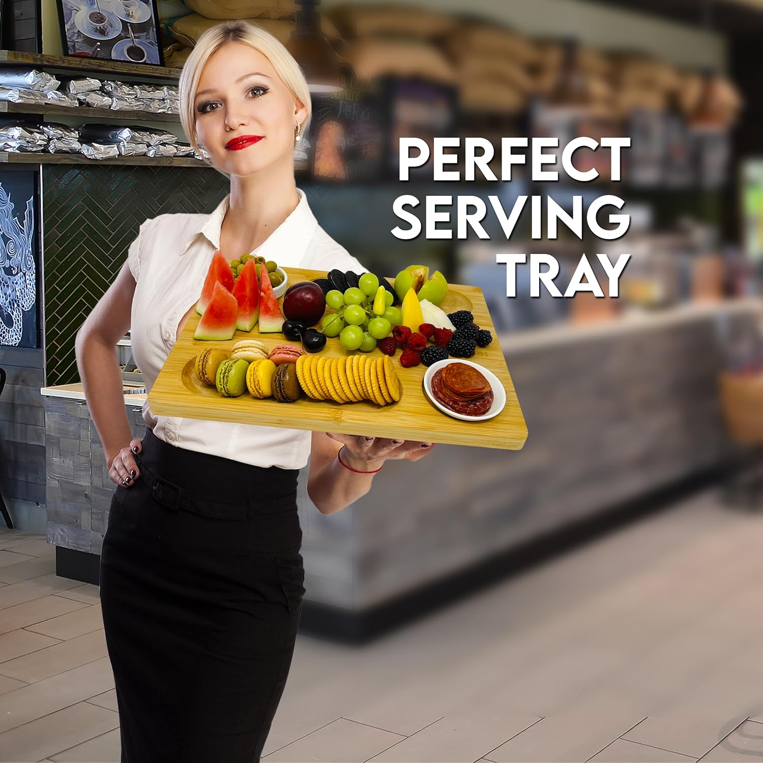 - MAKES AN EXCELLENT GIFT: If you are looking for a thoughtful housewarming gift for a friend? Our bamboo serving tray with cutouts is just perfect. It comes packaged in a gift-ready box, making it ready for gift giving. Click ‘Add to Cart’ now and make them feel special. Also makes a lovely addition to your kitchen collection.