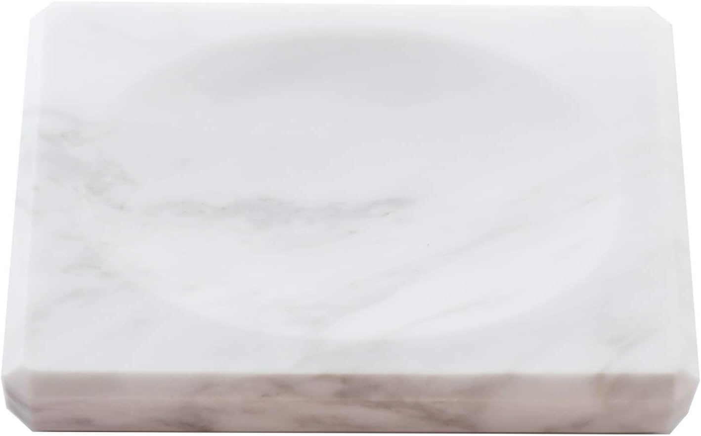 White Soap Dish Tray Marble Soap Holder Trinket Plate for Bathroom Sink Kitchen Countertop Bedroom Vanity Bathroom Accessory Rectangular