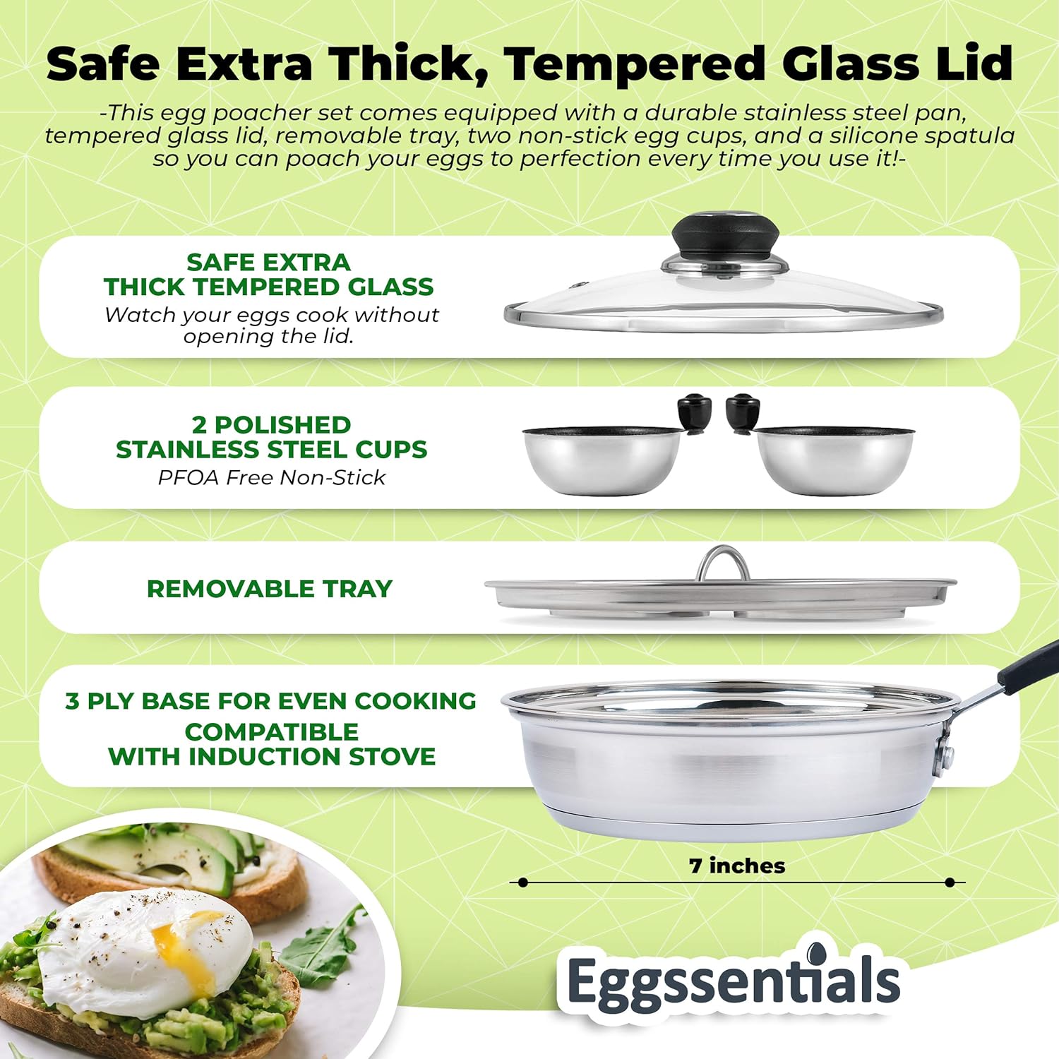 Eggssentials Egg Poacher Pan Nonstick Coating - Poached Egg Cooker, Stainless Steel Egg Poaching Pan PFOA Free with Spatula, Poached Egg Maker, Egg Poachers Cookware