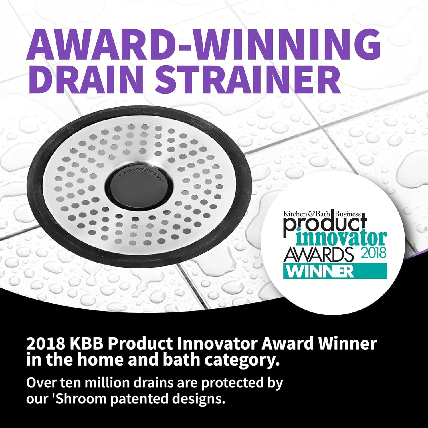 - AWARD-WINNING, PATENTED DESIGN – The Shroom family of products have been honored as a 2018 KBB Product Innovator Award Winner in the home and bath category. Over six million drains are now protected by our Shroom patented design