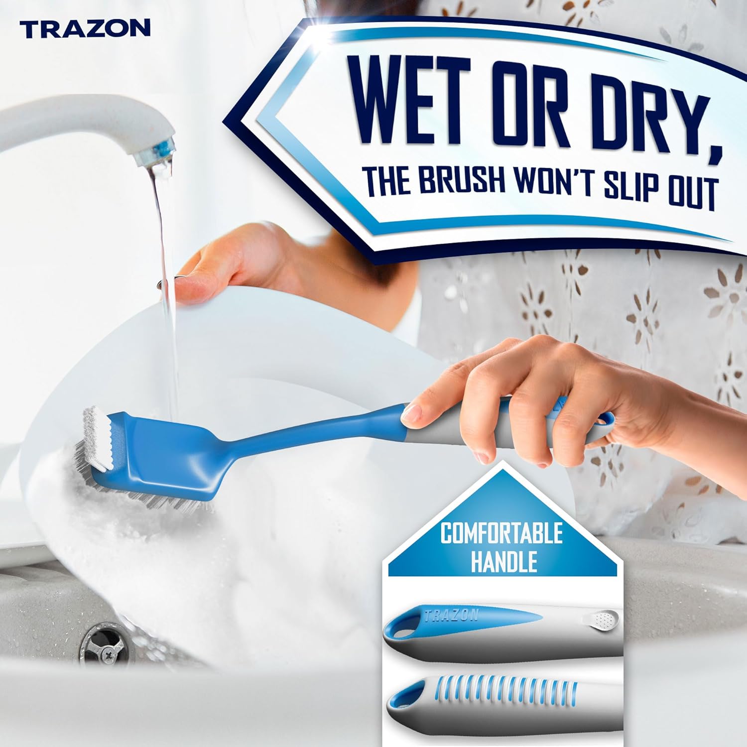 Dish Brush Set of 4 - Kitchen Scrub Brushes with Non-Slip Long Handle for Cleaning, Scrubber, Dishwashing, Dishes, Bottles, Straws, Cups, Pots & Sink, Blue