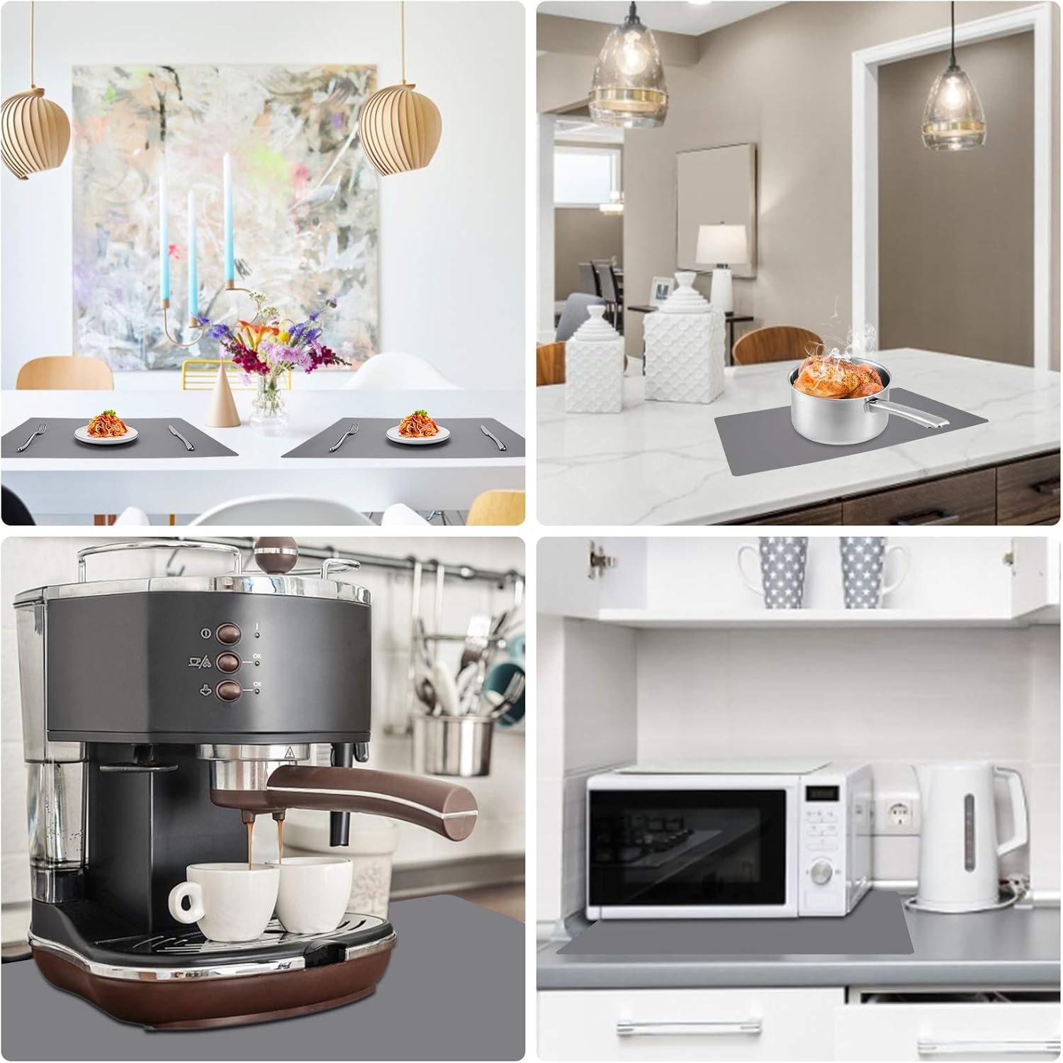 - Size :Sized at 28" x 20"x 0.03"(Length x Width x Thickness), large enough to protect your counter top, it can be placed under the microwave, air fryer, induction stove, toaster oven, coffee maker etc.