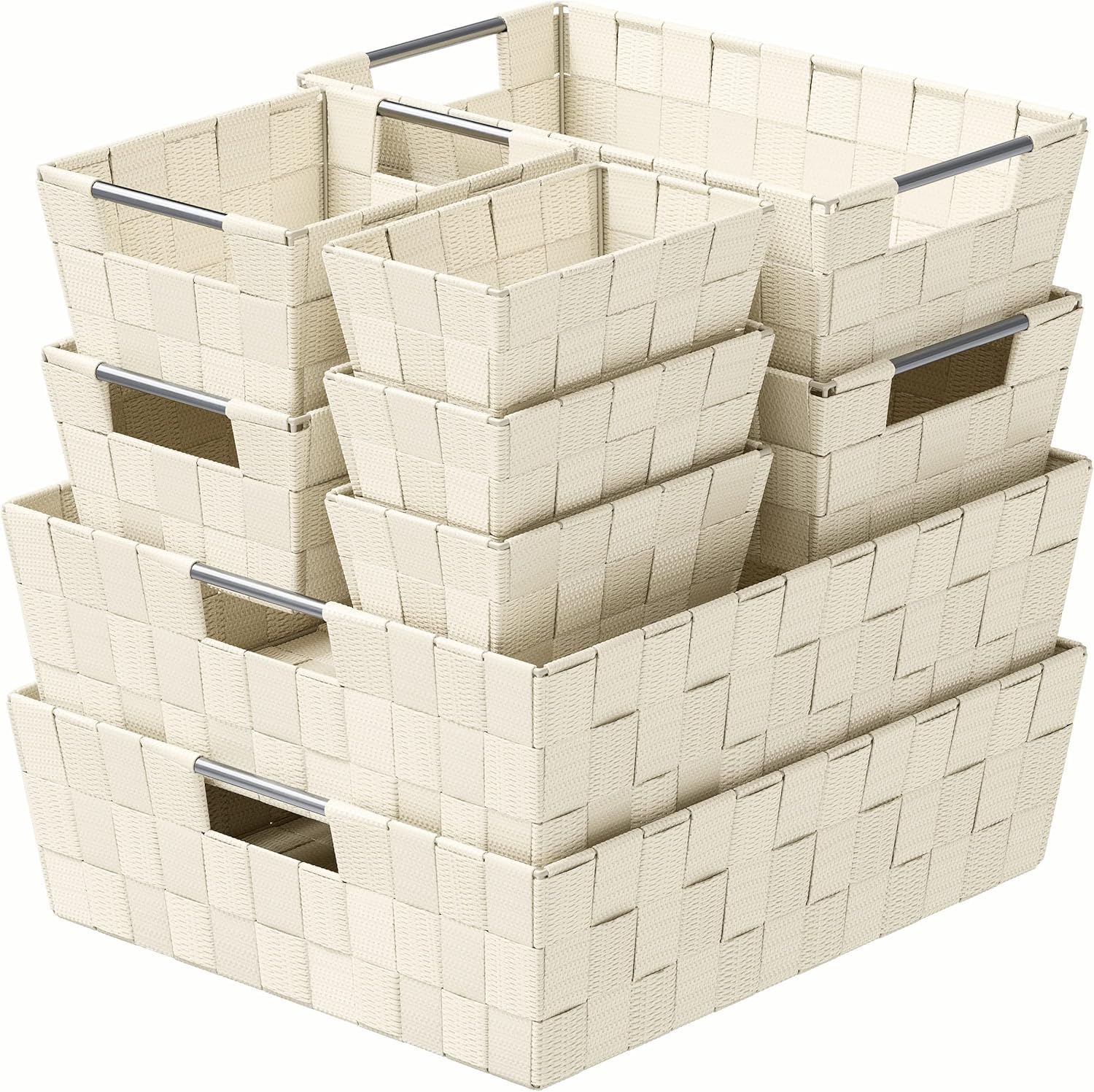 Baskets For Organizing Set Of 9 Cream - Storage Baskets For Shelves - Perfect Closet Organizer Bins, Bathroom Basket, and Pantry Basket - Small Storage Bins For Shelves - Bin For Organization