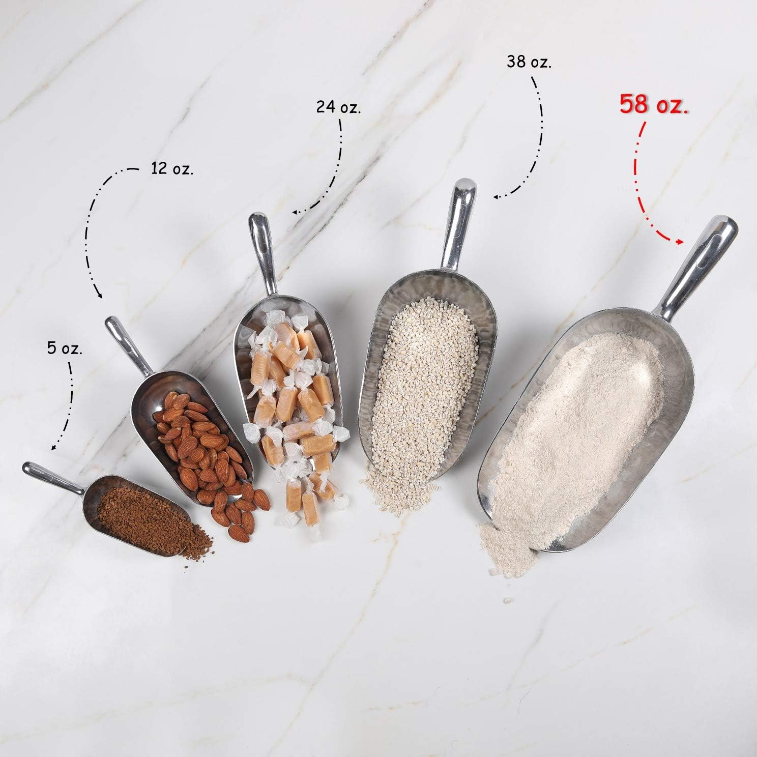 Cast Aluminum Utility Scoop - 58 oz. - Round Bottom, ice scoop For Multi-Purpose Use, With Finger Groove Handle (58 oz.)