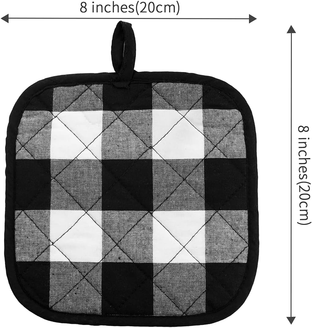 Joyhalo 4 Pack Pot Holders for Kitchen,Cotton Oven Holder with Great Heat Resistance,Non Slip Hot Pads for Kitchen Clearance,Black and White