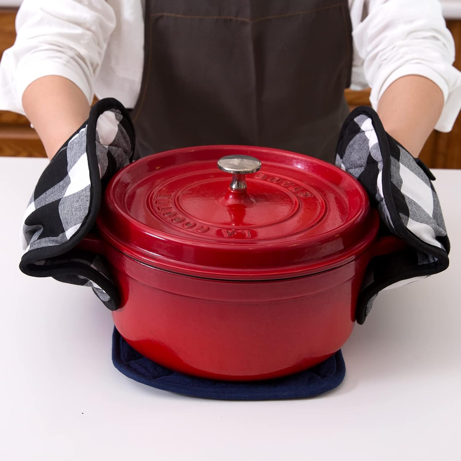 - QUILTED AND PADDED - Heat resistant up to 400 degrees allowing safe removal of baking dishes and cast iron from the oven and hot pots from the stove.