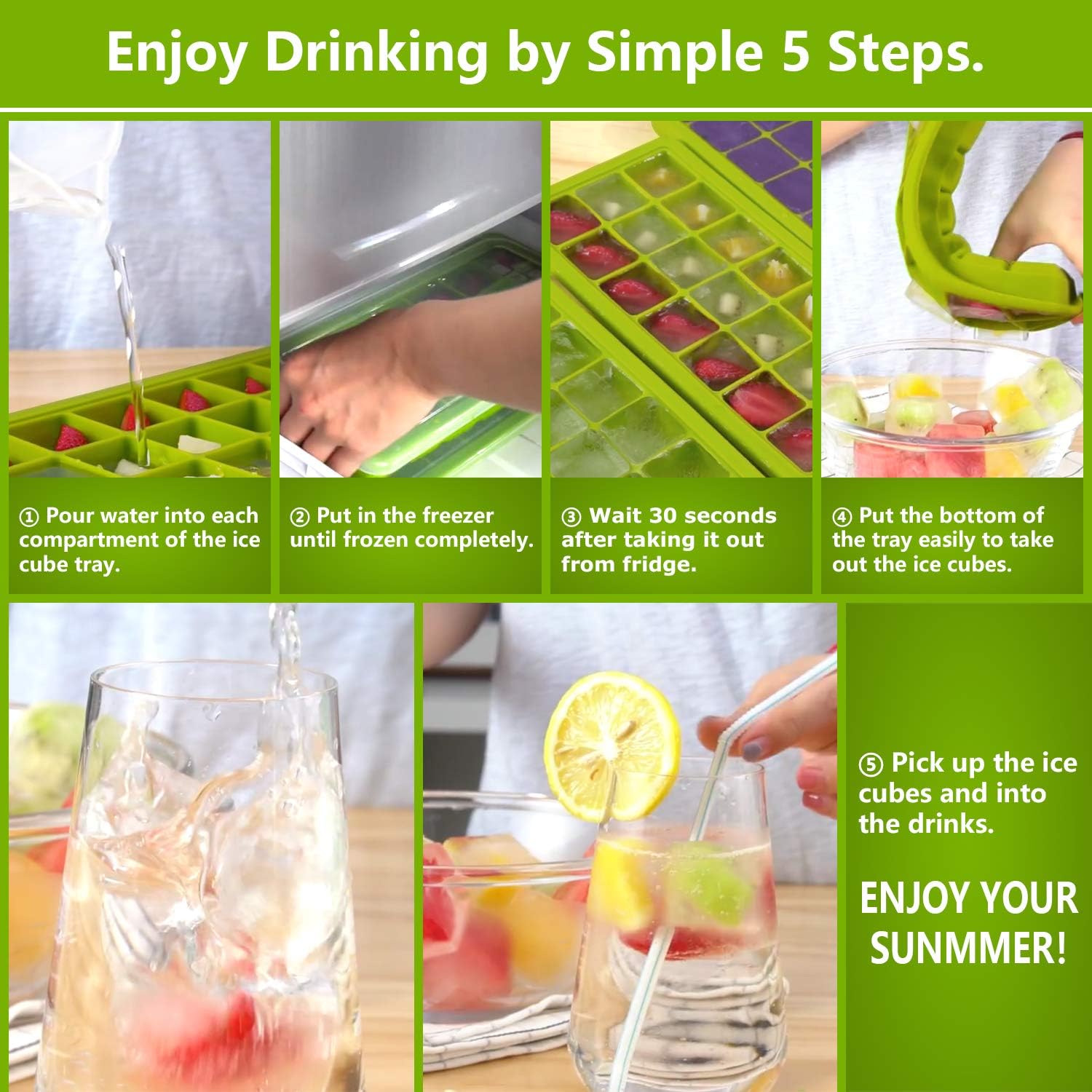 - ✅【 Durable and Dishwasher Safe】The smooth silicone surface shapes bottom well, make it easy to release ice cubes quickly. With good toughness, our freezers silicon ice cube molds is not easily cracked. You can put them into your dishwasher directly after ice making (not the lid)