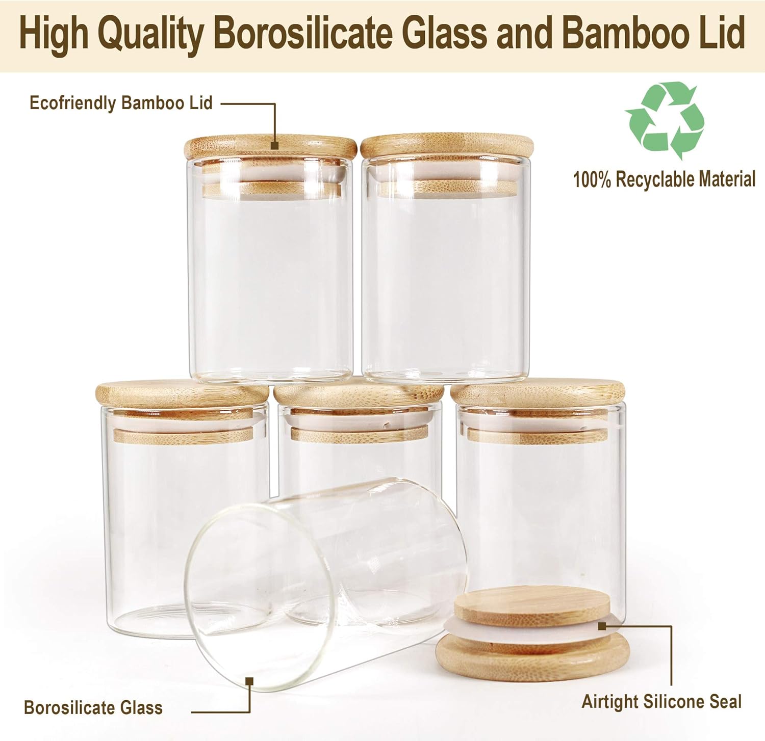 - ✅ HIGH QUALITY GLASS JAR WITH BAMBOO LID: Our EcoEvo glass canisters are made of the highest quality Borosilicate glass with smooth and beautiful smoothly polished Bamboo Lids. EcoEvo bamboo lids are strong, durable and Eco-friendly without any distracting brand logo. They're plastic free, BPA free, phthalate free. Make heathy products a part of your everyday life!