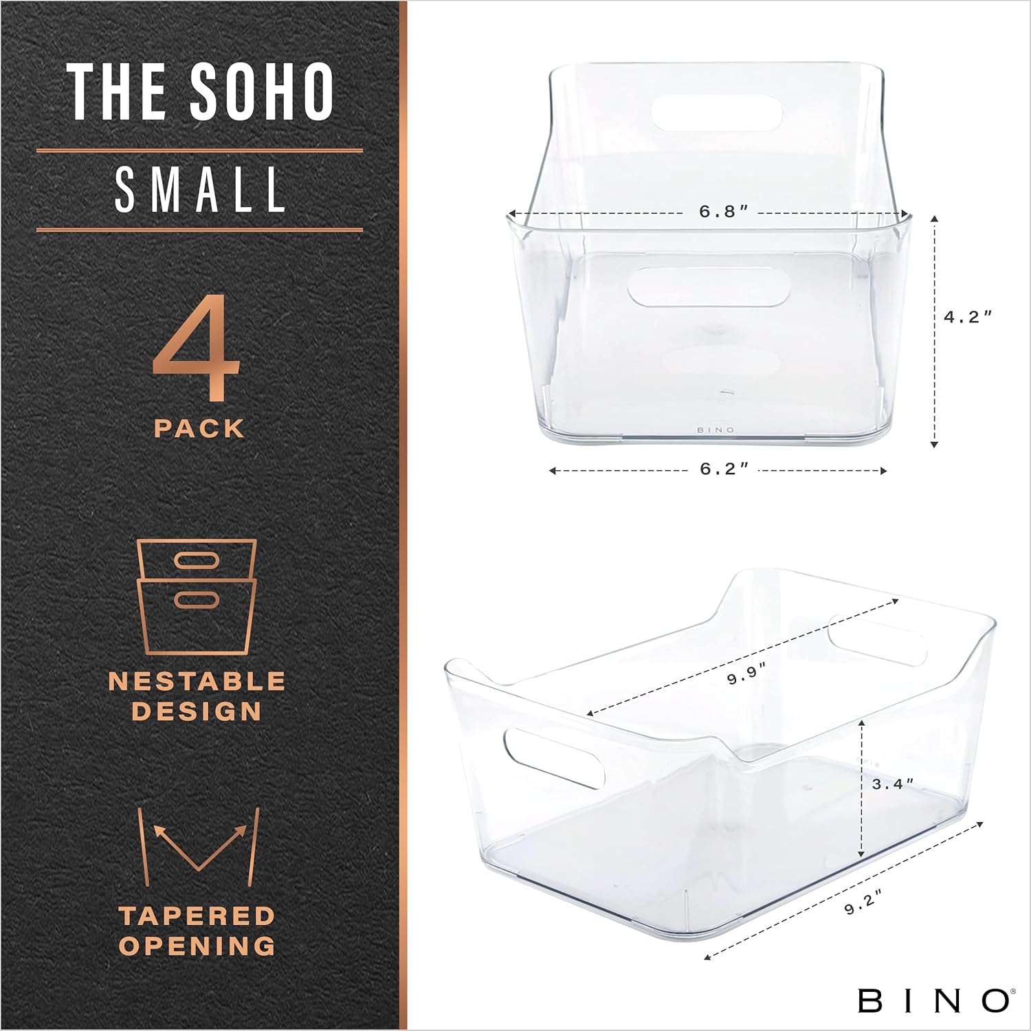 BINO | Plastic Organizer Bins, Small - 4 Pack | The SOHO Collection | Multi-Use Plastic Bin | Pantry & Freezer Organizer Bin | Storage Containers | Bins for Home & Kitchen Org