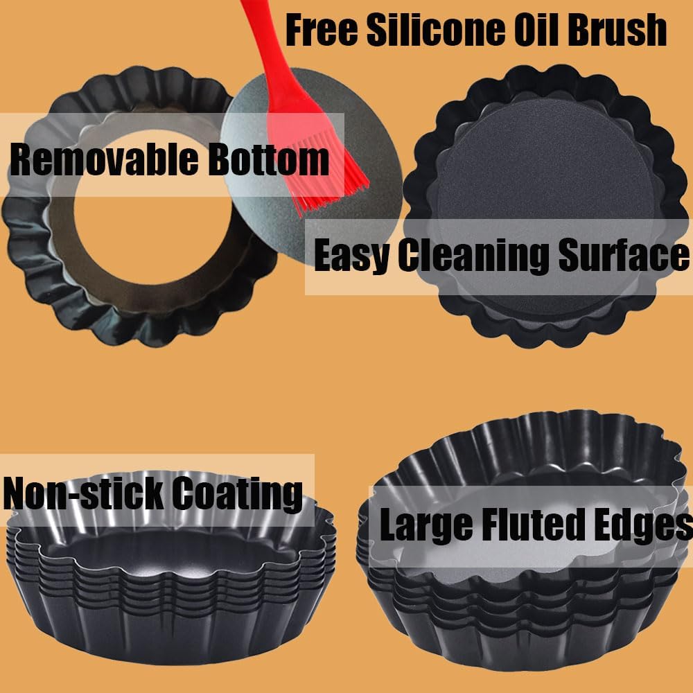 - 【LARGE FLUTED EDGES】This 4 INCH TART PANS fluted made from heavy duty carbon steel materials, non-stick, cute, classy and chic fluted edges and perfect for creating individually-sized desserts. 8 pieces one set, sufficient quantity with a red silicone brush for you to have a very pleasant baking time.