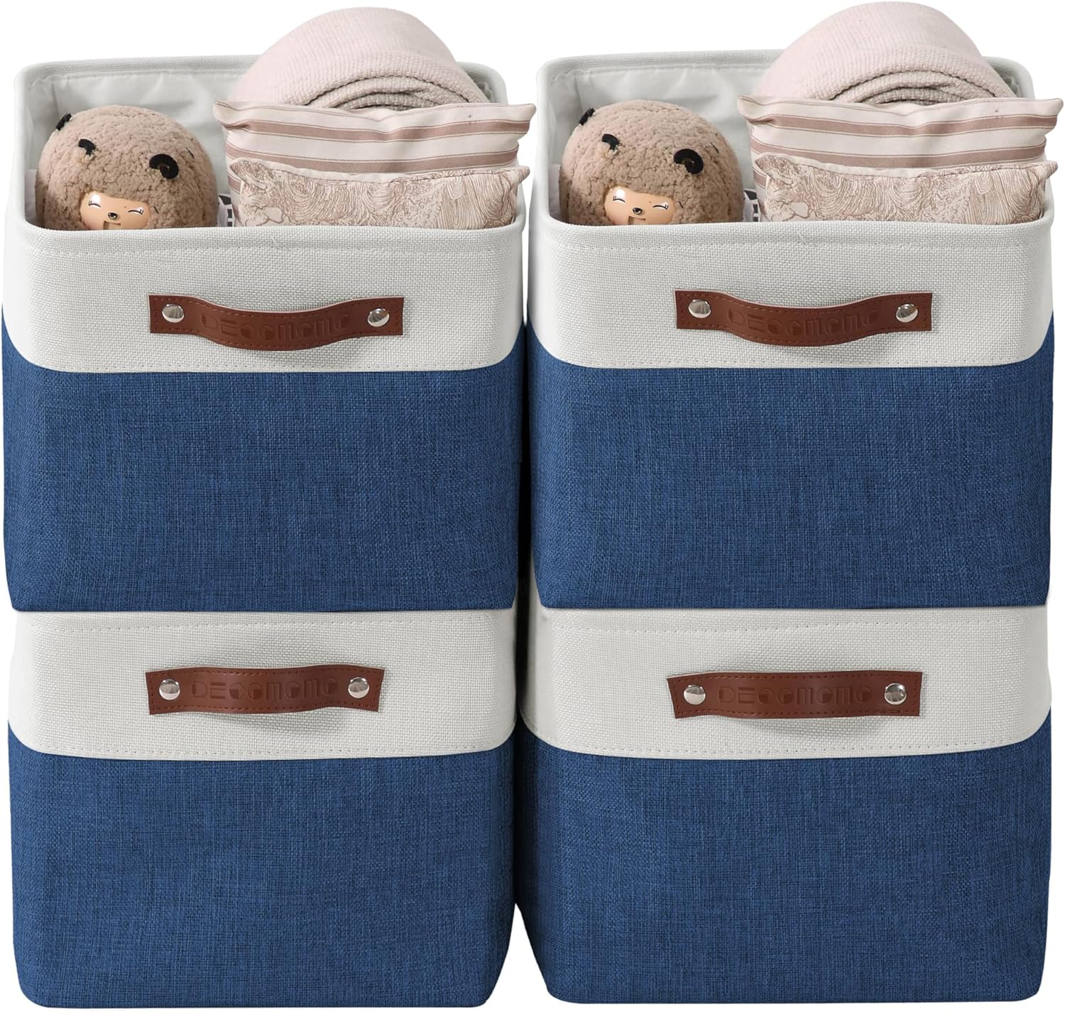 DECOMOMO Storage Baskets for Shelves - Fabric Storage Bins, Linen Closet Organizers and Storage (Navy Blue & White, Large - 4 Pack)