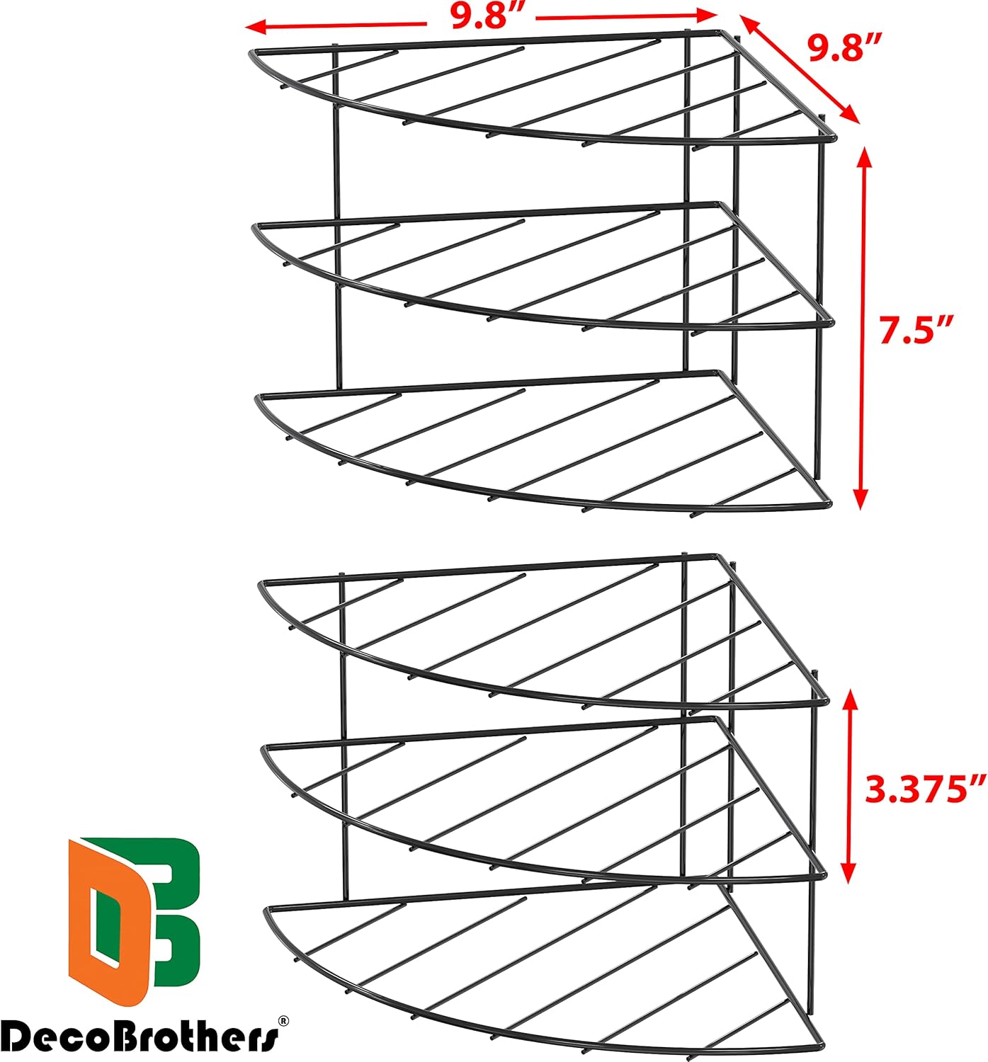 Deco Brothers 3-Tier Counter and Cabinet Corner Shelf Organizer, 2 Pack, Black