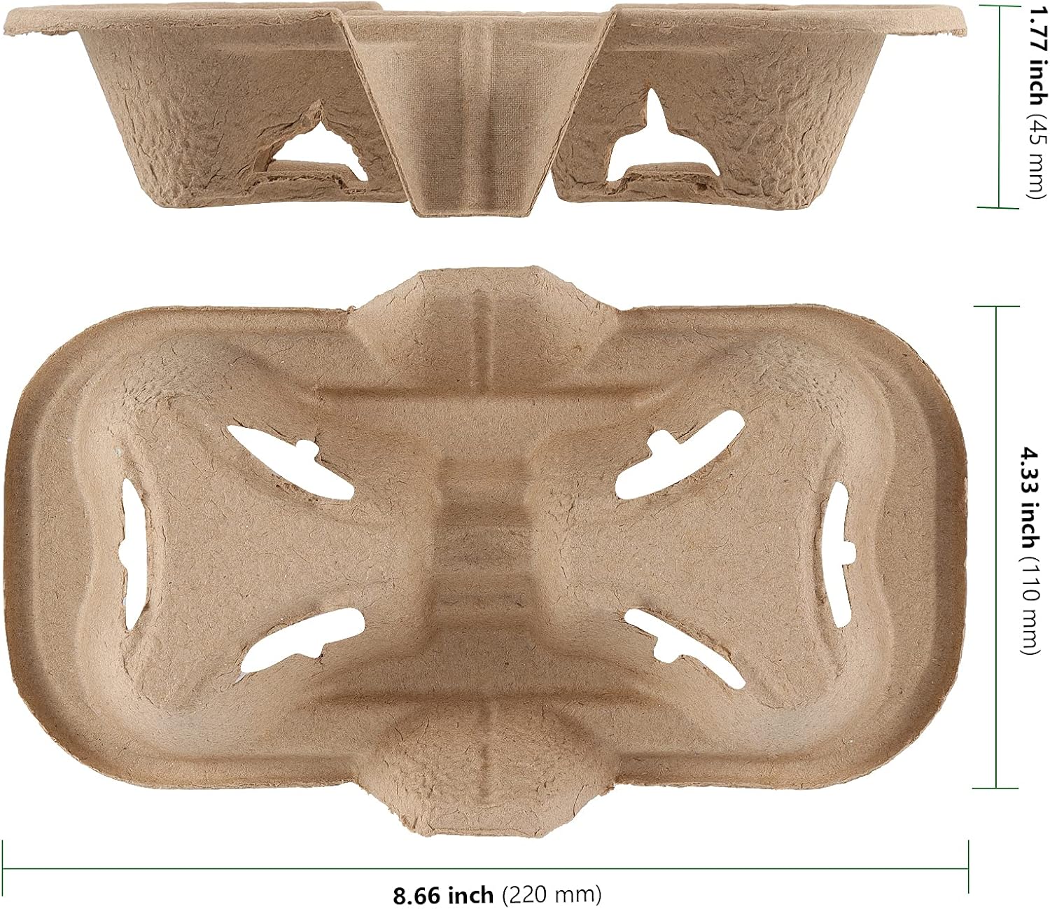 - 2 GROOVES DESIGN - The 2 cup holders are molded into two grooves from solid pulp fiber to hold two cups of beverages firmly, which can effectively prevent the liquid from overflowing due to shaking.