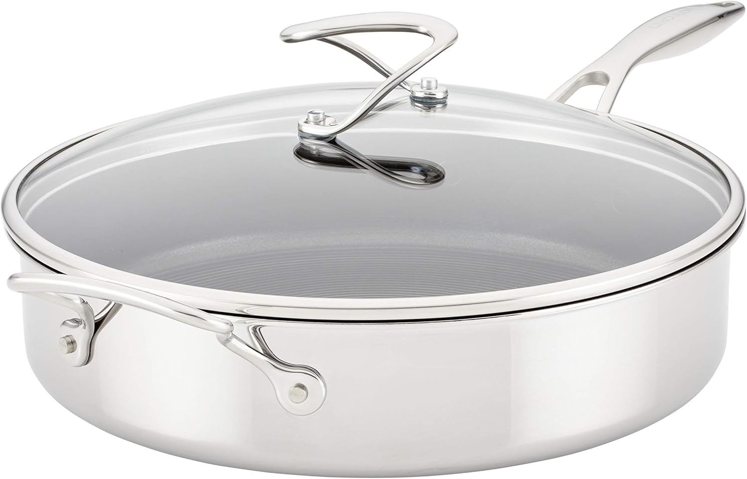Circulon Clad Stainless Steel Saute Pan with Lid and Hybrid SteelShield and Nonstick Technology, 5 Quart - Silver