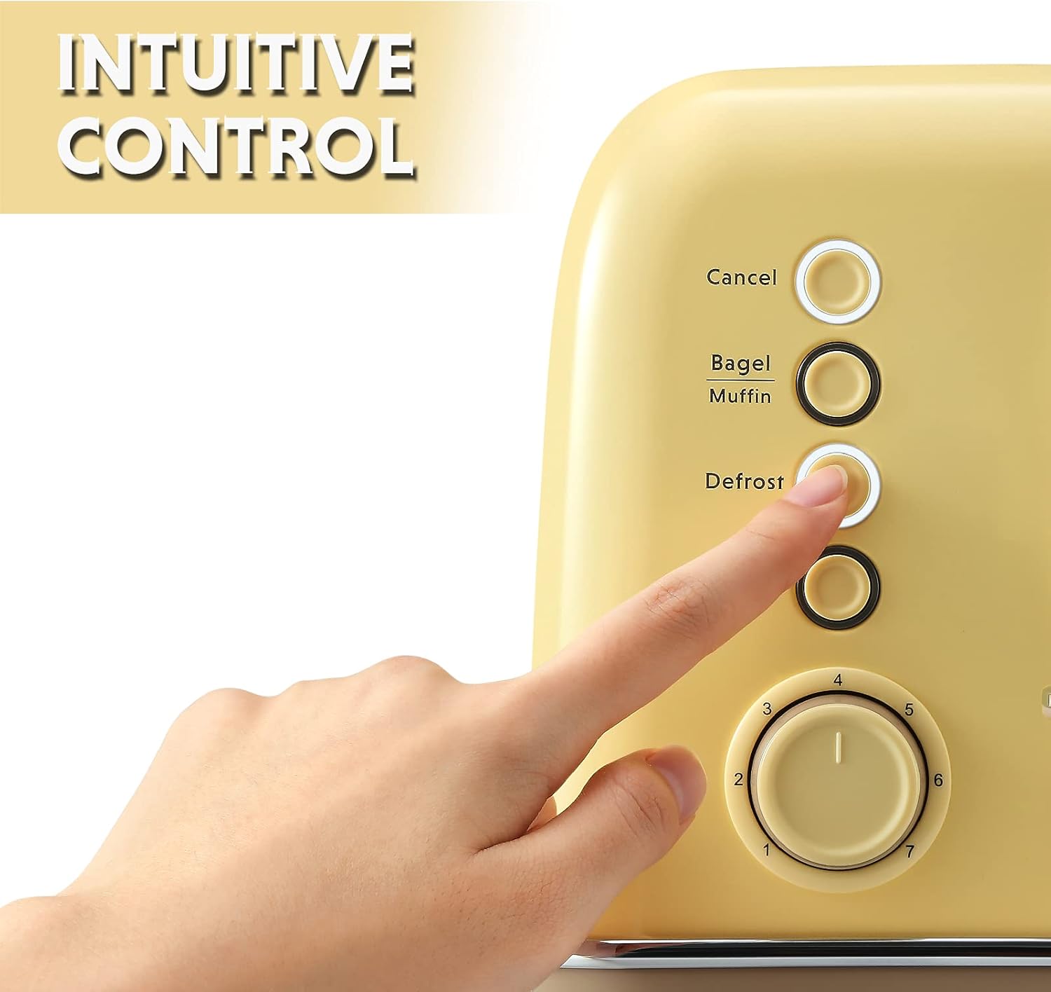 BUYDEEM DT620 2-Slice Toaster, Extra Wide Slots, Retro Stainless Steel with High Lift Lever, Bagel and Muffin Function, Removal Crumb Tray, 7-Shade Settings,Mellow Yellow