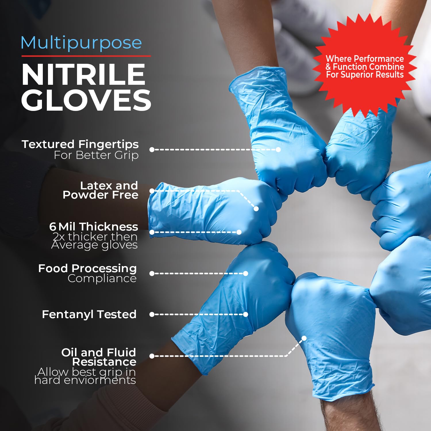 Heavy Duty 6 Mil Blue Nitrile Gloves Disposable Latex & Powder Free -Extra Stretchy Fentanyl Safe |Medical,First Aid Kit,EMT|Food Safe Rubber Gloves for Cooking & Cleaning|Bulk Pack (1000)