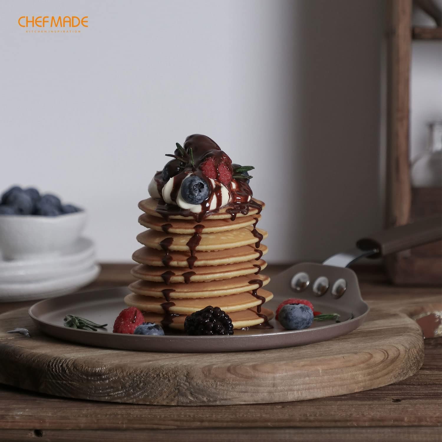 CHEFMADE Crepe Pan with Bamboo Spreader, 8-Inch Non-Stick Pancake Pan with Insulating Silicone Handle for Gas, Induction, Electric Cooker (Champagne Gold)