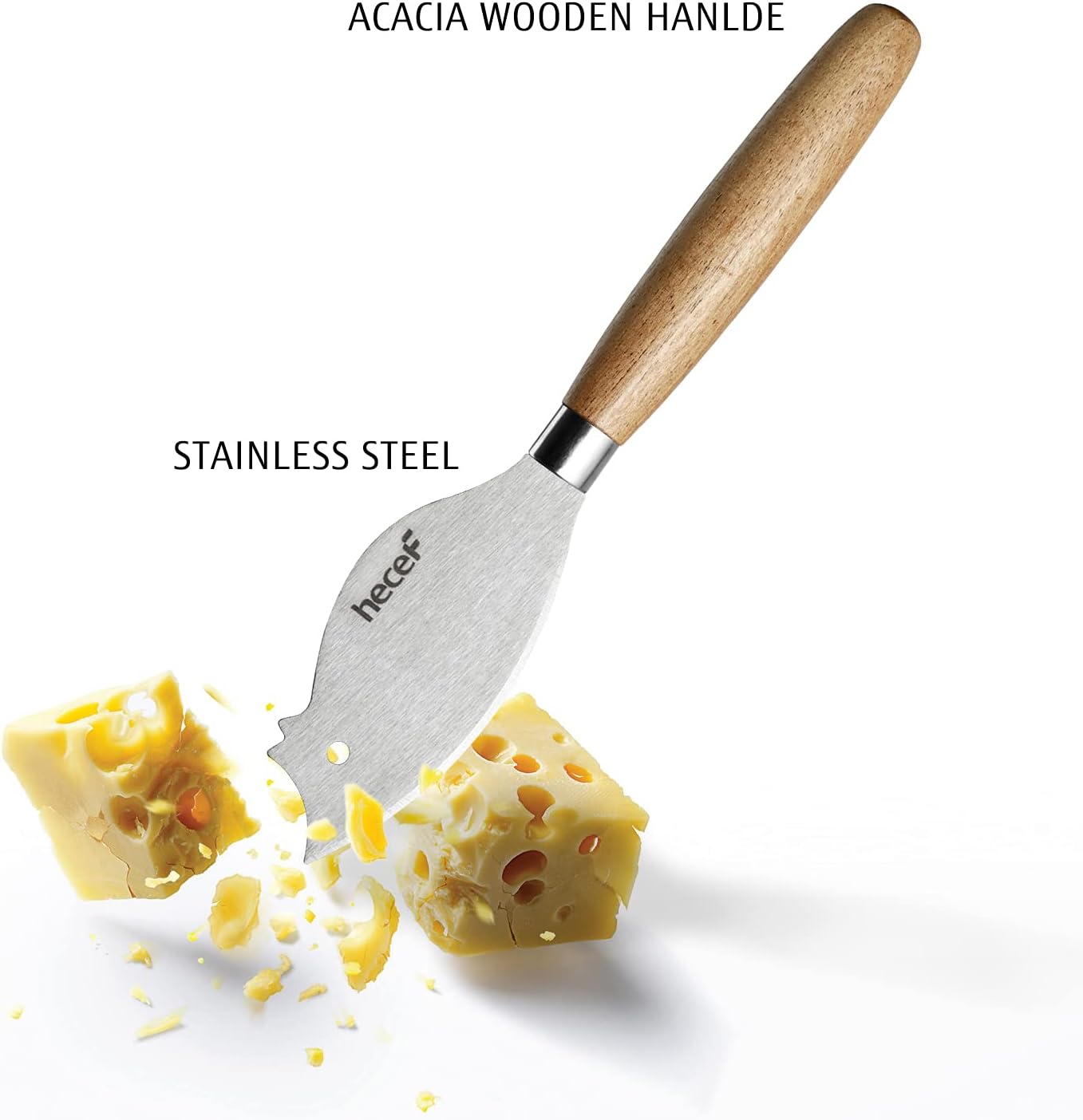 - Mice Shaped Cheese Knife: The knife is made from high carbon stainless steel with acacia wood handle in a fun mouse-shape, which is designed to provide a comfortable grip and to make cheese cutting procedure easier. High carbon stainless steel cheese knife is extremely sharp, highly corrosion resistant and not easy to get rust compared to other common cheese knife.