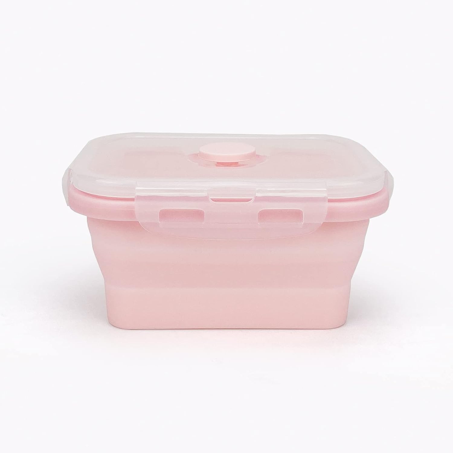 - START YOUR PORTABLE LIFE: Each collapsible food container can hold 350ml(about 12oz) food. In the expanded stage, 5.2inches(L) x 3.8inches(W) x 2.6inches(H); After collapsed, its height becomes 1.2inches. The small food container size makes them fit for storing candies, chocolates, cereals, juices, fruits, nuts, snacks, etc.