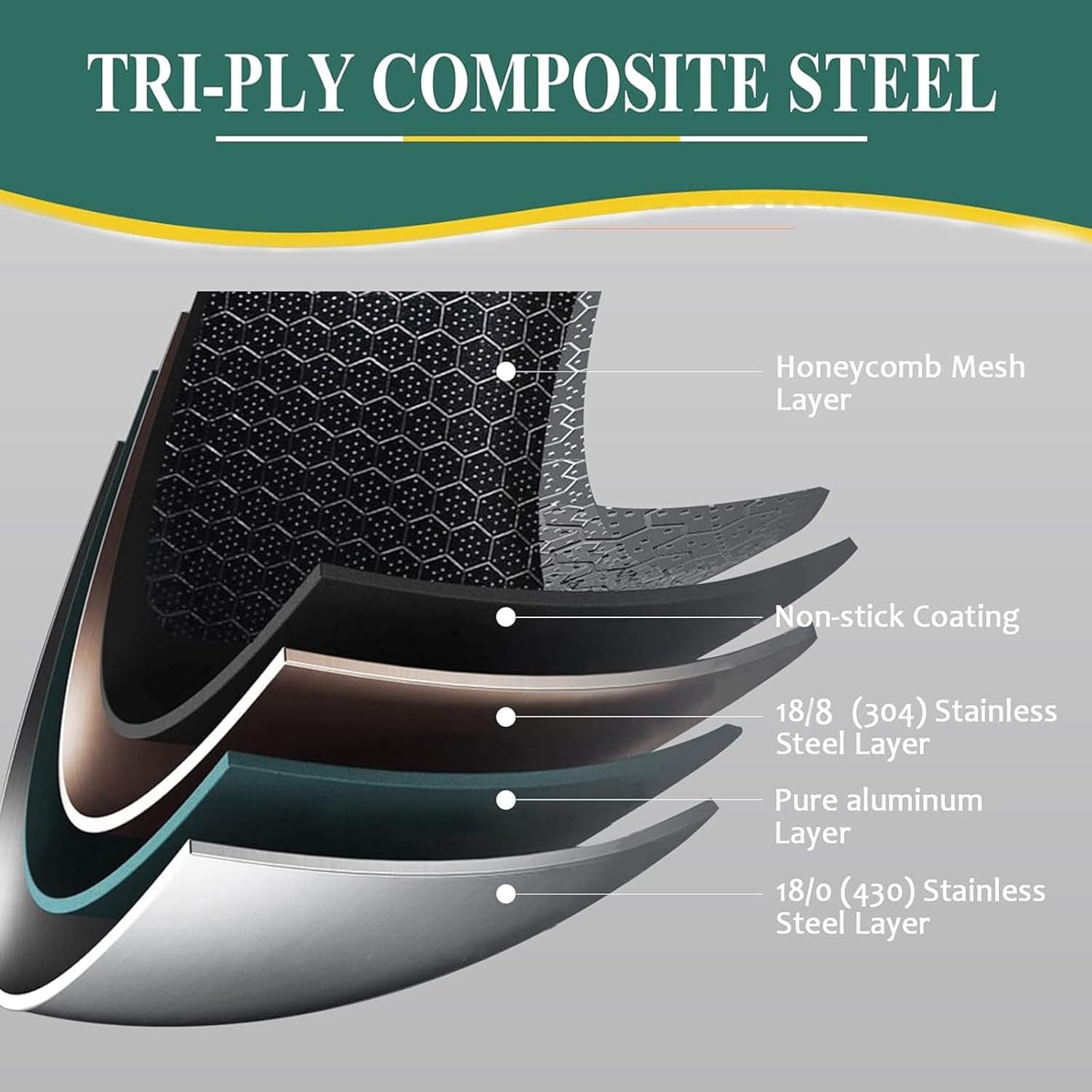 - The Nonstick Inner Surface of 2.5QT Cook Pot is Laser-Etched, Scratch-Resistant. The Triply Cookware Pots is Effortless To Clean. Even Metal Spatulas and Steel Wool Can Be Used Without Causing Damage