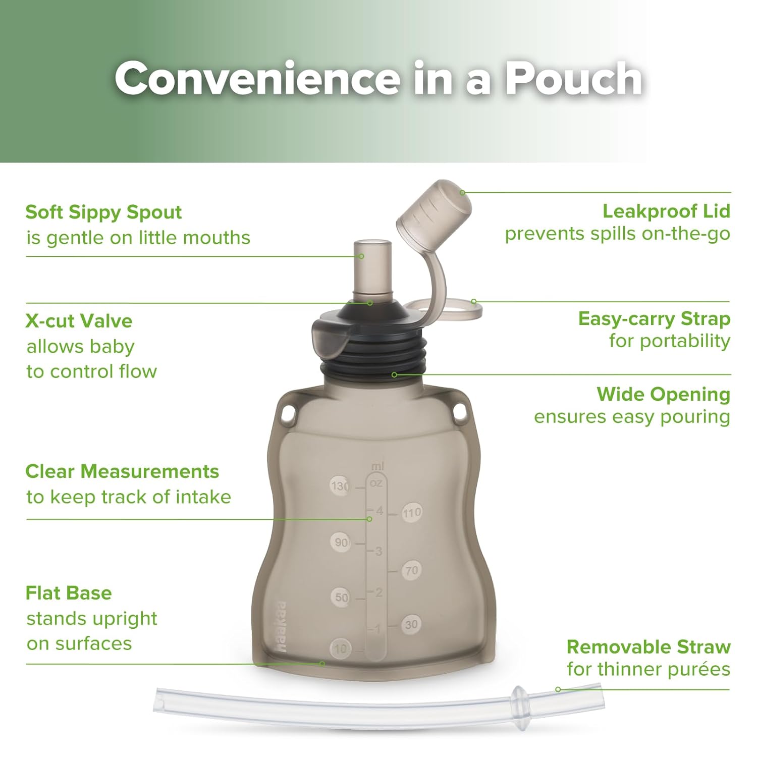 - πππππππππ πππ & πππππππππ πππππ:The one-piece stopper + lid fits snugly into the Haakaa silicone pouch, keeping contents safe and secure. The straw is ideal for thinner liquids.