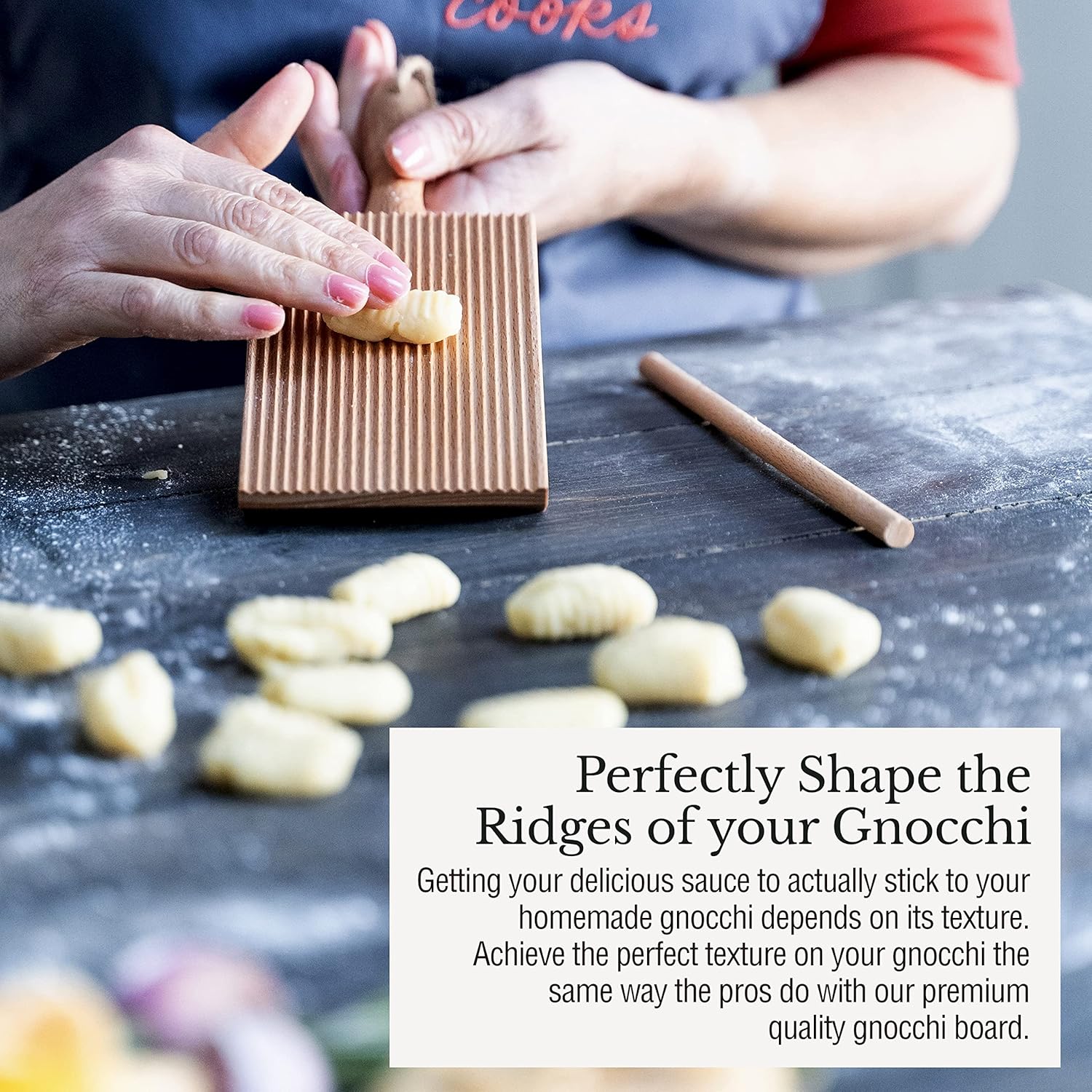 - Wooden Gnocchi Board Makes It Easy To Make Potato Or Pasta Dough Into Authentic Italian Gnocchi. The Easy Grip Handle Makes The Perfect Angle And Keeps Board Steady For Easy Use. The Ridged Board Helps to Add Texture To Create Perfect Gnocchi Which Will Hold More Pasta Sauce. Easier To Use Than A Fork Will Not Flatten The Dough And Create The Same Size For Even Cooking.