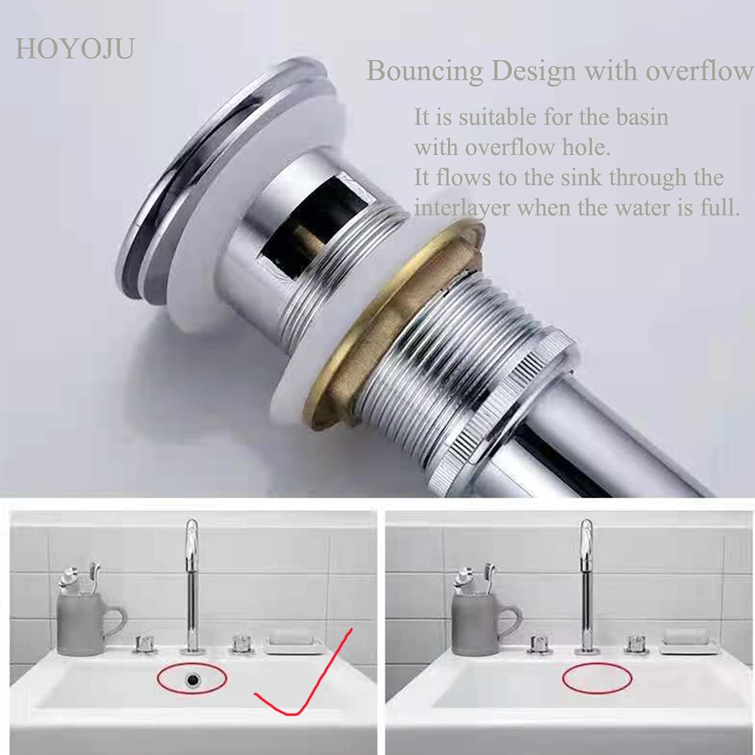 Pop Up Sink Drain with Overflow Bouncing Style Stopper Brass Polished Chrome for Bathroom