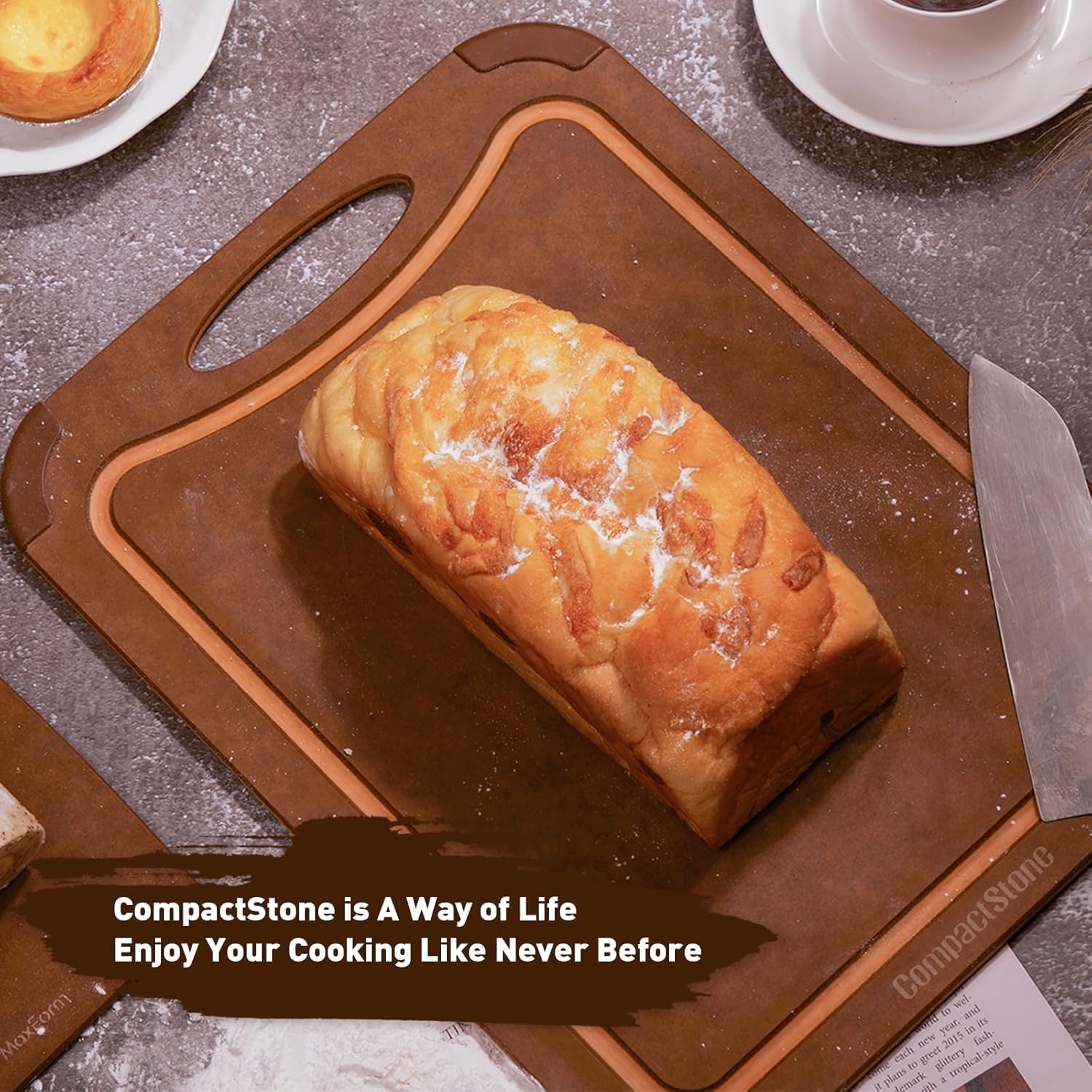 Cutting Board with Non-Slip Feet and Juice Groove for Kitchen, Wood Fiber Composite, 17.3-Inch by 12.8-Inch, Brown