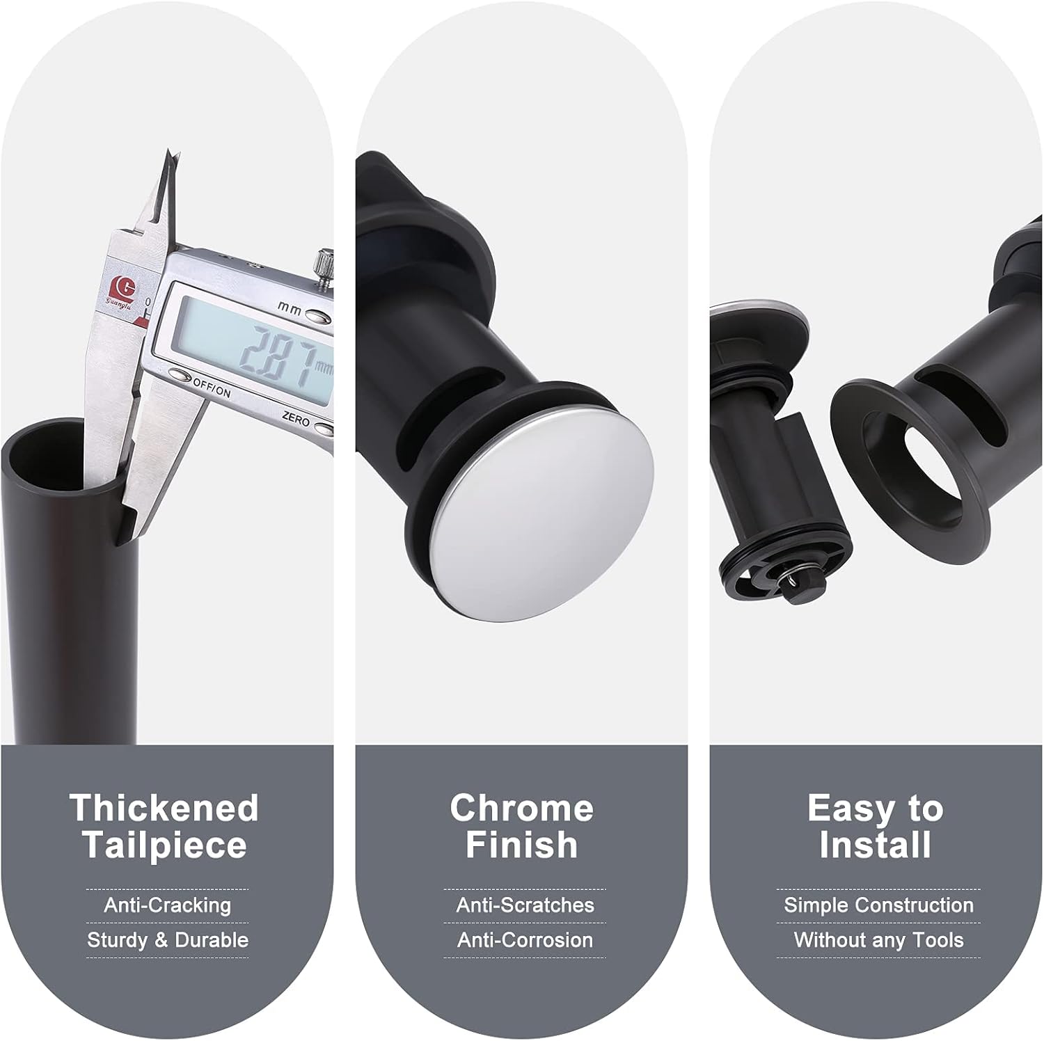 - Quick Drainage: The Pop Up design only needs to press lightly, and the pop-up drain will quickly sprinkle water. 10% faster than traditional drain plugs. And the sturdy bouncing core can ensure you press more than 50,000 times.