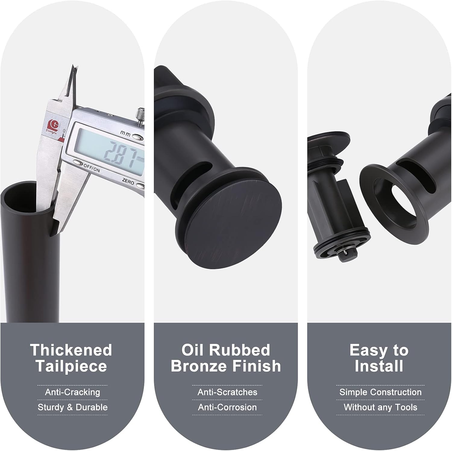 - High Quality Material: Your bathroom sink drain is constructed of premium grade stainless steel and PP material, with Oil Rubbed Bronze finish,protecting against corrosion and rust in a humid environment.