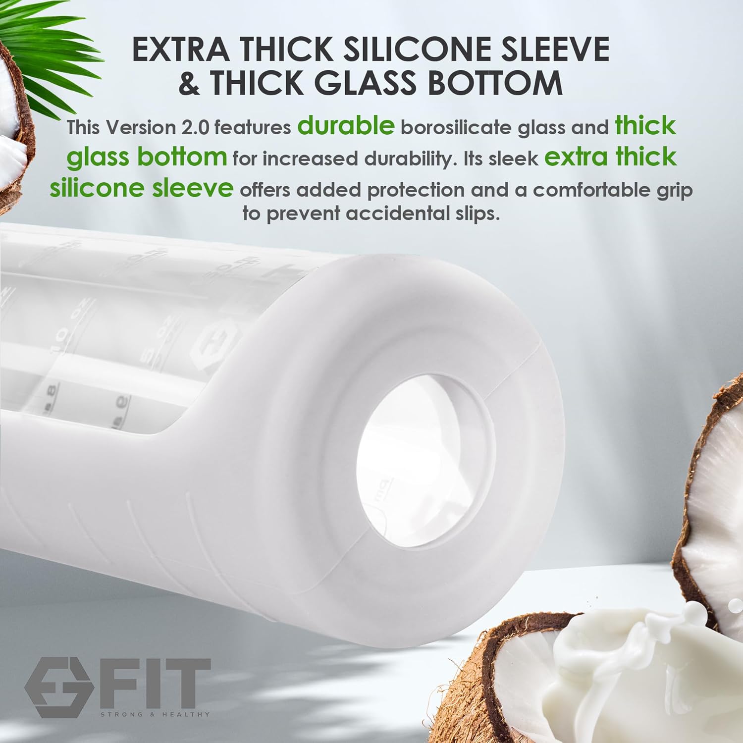 - Upgraded design and fun colors to choose from: Introducing our upgraded original aesthetic water bottle; this new version features an extra thick silicone sleeve, providing added protection, insulation, and a secure grip; crafted from thick borosilicate glass, it's ideal for home, office, or gym use; we've also upgraded one of the lids to a convenient straw lid, perfect for sipping on the go; choose from various colorful removable sleeves to personalize your style; have fun picking your color