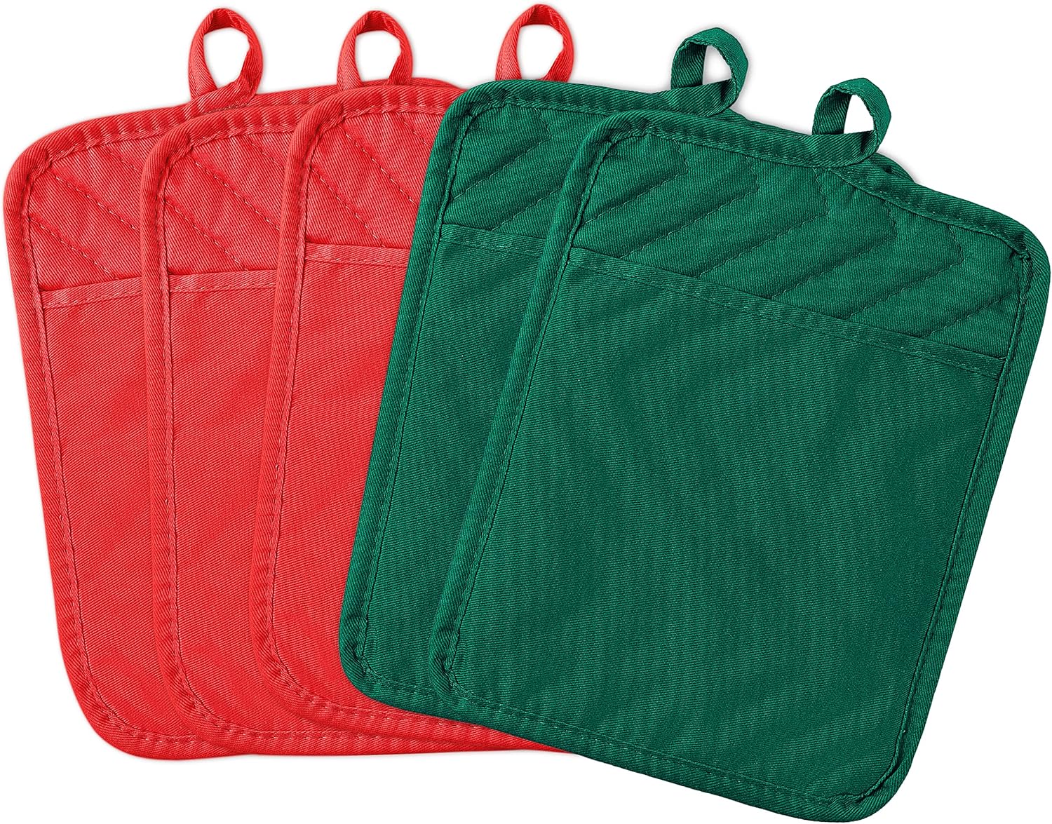 GROBRO7 5Pack Pot Holders for Kitchen Heat Resistant Cotton Potholder Multipurpose Hot Pads Machine Washable Oven Mitts with Pocket Potholders for Baking and Cooking 8.9 x 6.9 in Red Green