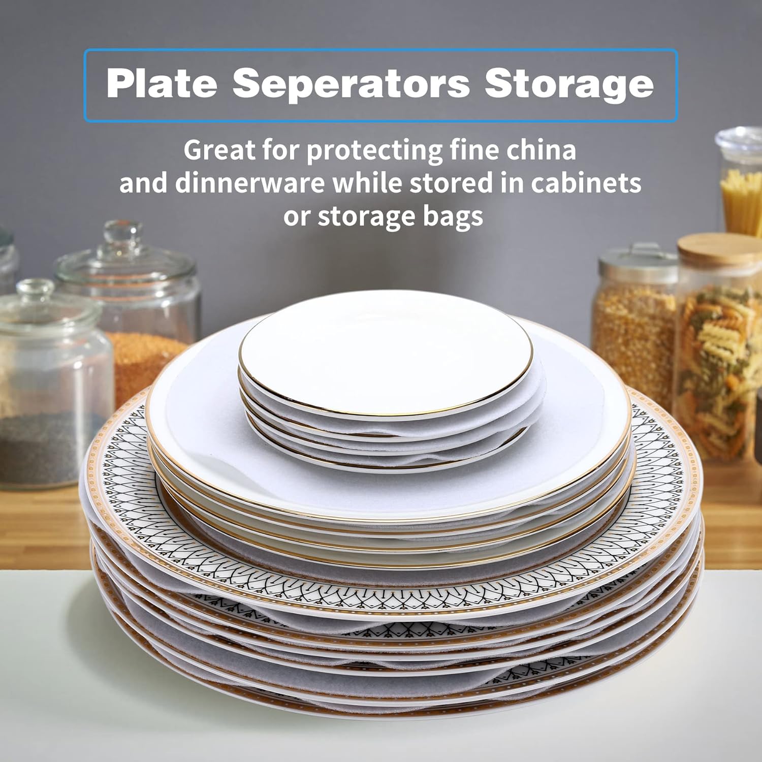 - 【Easy to Use】Simply place these felt plate separators between plates or bowls while on the shelf to protect them from rubbing, bumping, or sticking together. These felt dish separators can be easily trimmed with scissors to personalize them for your dish collection or customize them for non-circular dishes