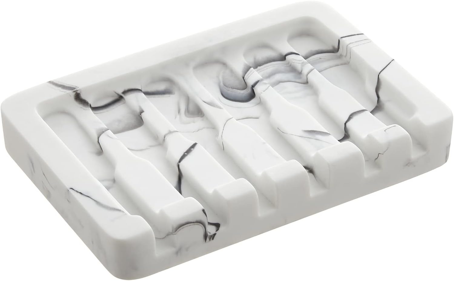Self Draining Soap Dish - Marble Look Soap Holder Tray Savers Box Container Sponge Holder for Bathroom Shower Kitchen, White