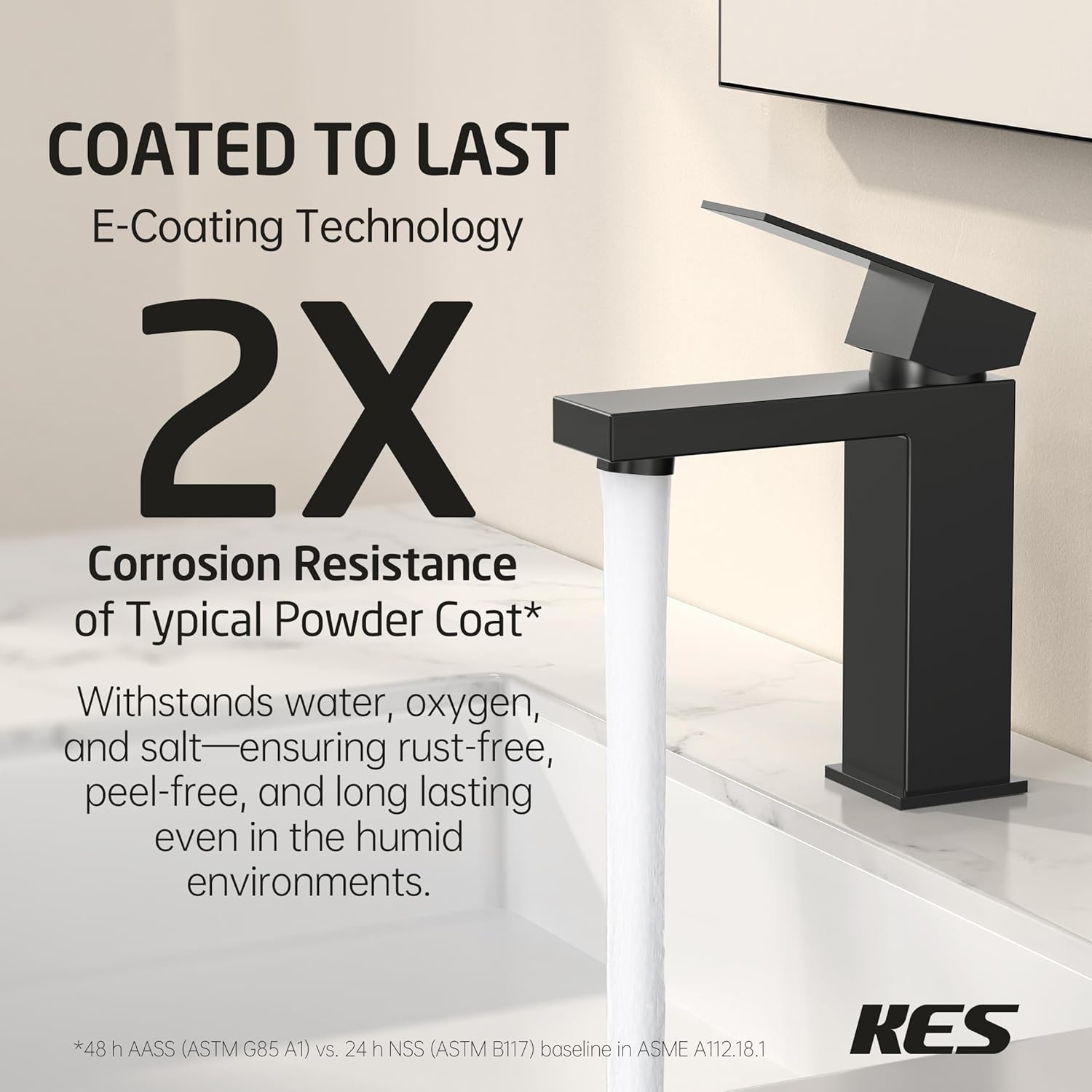 - [ Safety Comes First ] KES matte black bathroom faucet is made with no-lead 18/8 stainless steel for safe drinking water. Water safety is our priority!