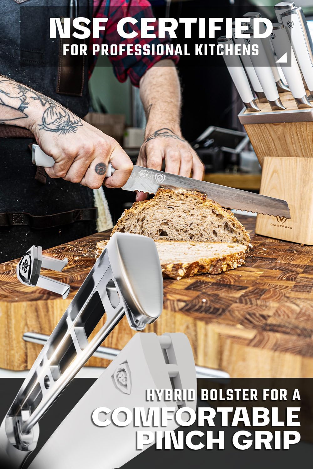 Dalstrong Knife Block Set - 8 Piece - Vanquish Series - Forged High Carbon German Steel - Kitchen Knife Set - Premium Wood Block - White POM Handle - NSF Certified