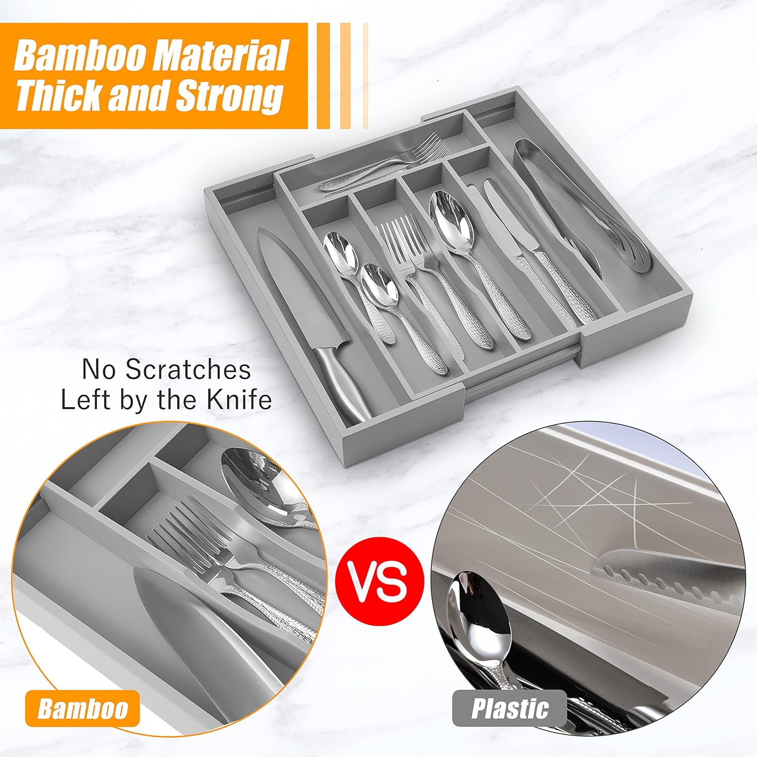 - ✅【Perfect premium bamboo】Our cutlery organizer in drawer is made from natural bamboo that have grown for more than 4 years.Every bamboo flatware organizer for drawer is handmade by senior craftsmen to ensure smooth surface without burrs.You can safely let your family or children use our drawer organizer tray.