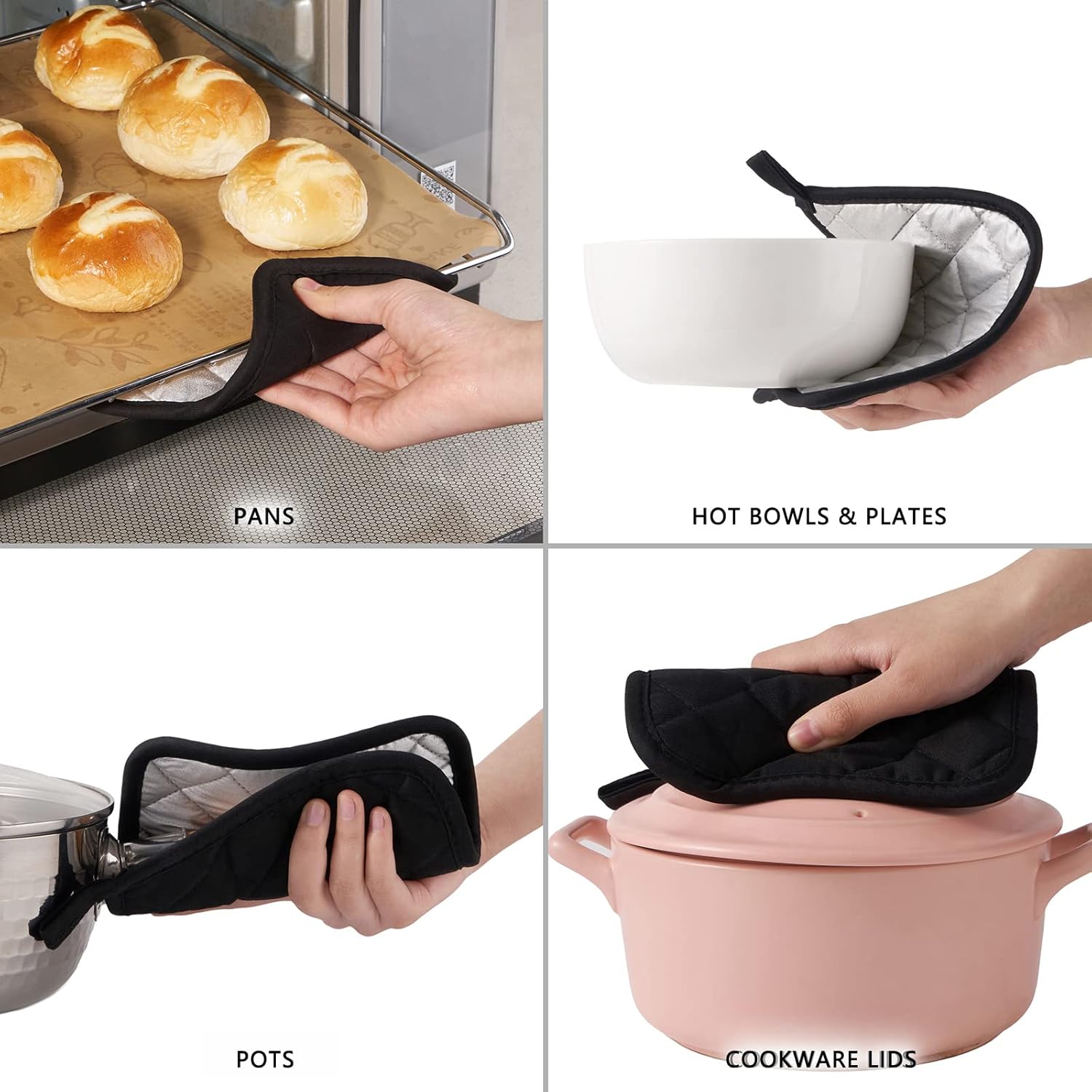 - QUALITY PRODUCT: 100% terry looped cotton on one side and a heat resistant silverstone lining on the other with pure cotton filled. Hanging loop allows for easy storage, easy to clean, durable.