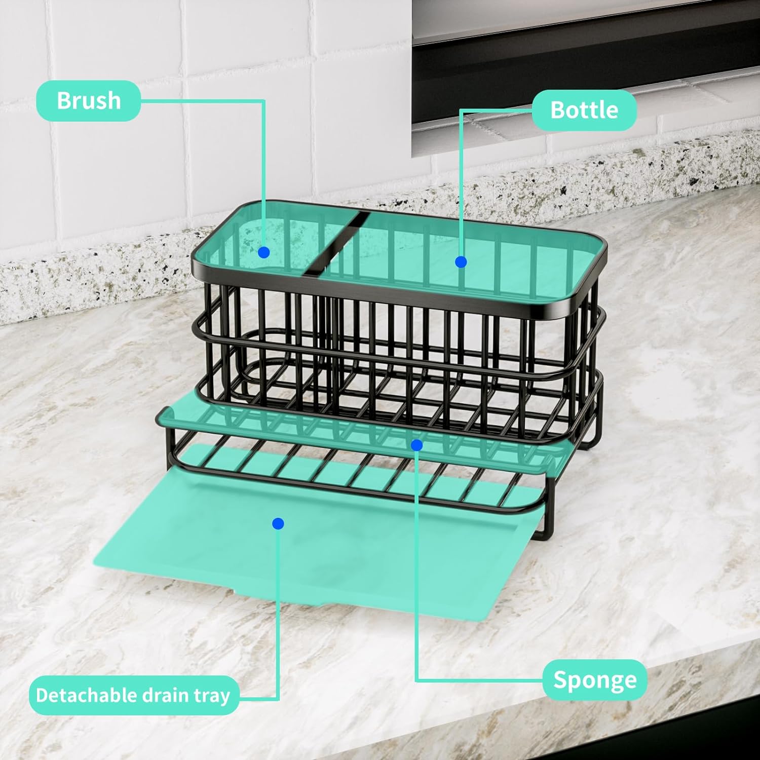 - [Anti-slip Sink Organizer]: We know many customers will worry about instability of kitchen caddy. Therefore, our soap holder for kitchen sink added non-slip rubber feets. No need to worry about sliding and stability of this sink organizer rack for kitchen