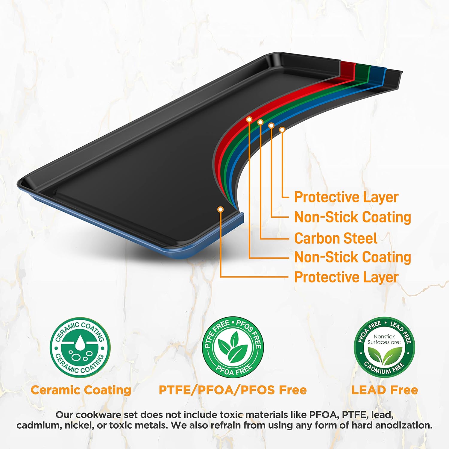 - NON-STICK COATING: Made from durable & BPA-free carbon steel metal & it’s shielded w/ non-stick coating that eliminates the need for butter, oil, or cooking spray. Also for quick & effortless food release plus it does not emit any weird odor or smell