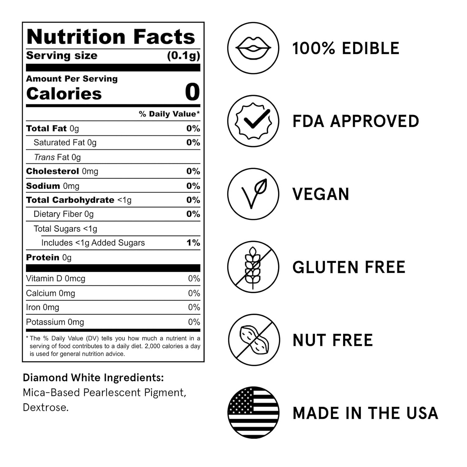 - NO TASTE. NO TEXTURE: Odorless, tasteless, and textureless, Fancy Edible Glitter is approved for both food and drink consumption.