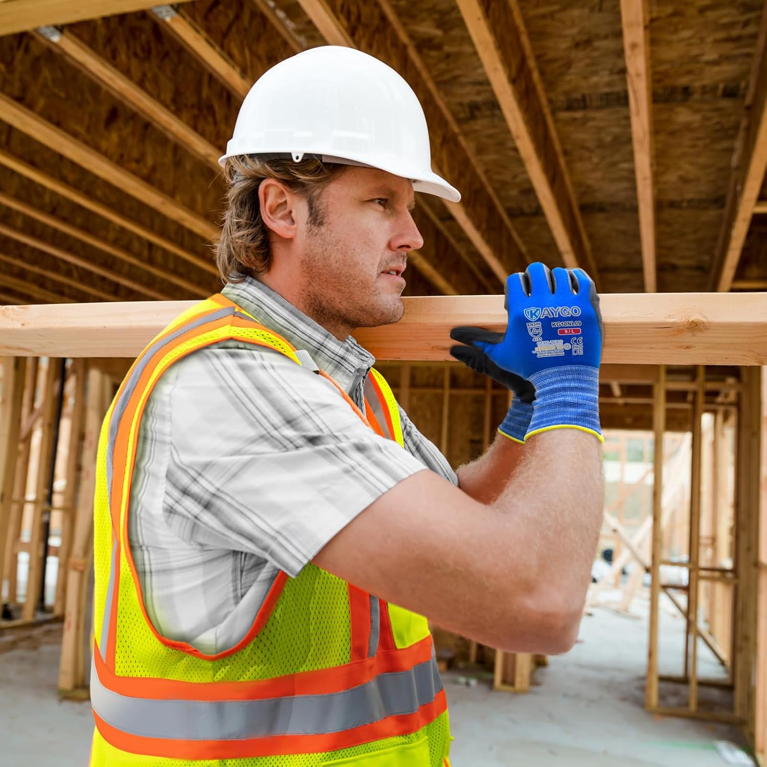 KAYGO Safety Work Gloves MicroFoam Nitrile Coated, 3 Pairs KG18NB,Seamless Knit Nylon Glove with full fingers Touchscreen, Ideal for Automotive,Warehouse,Construction (Large, Blue)