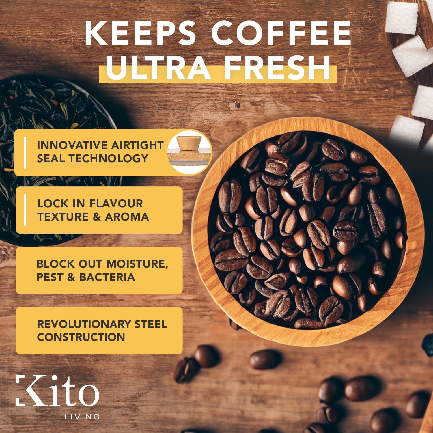 - SPACE SAVING AND STACKABLE: These airtight container canisters feature a stackable design so you can place them on your kitchen counters while saving space and keeping them organized. Each pack comes with a Sugar Canister, Tea Canister, and Coffee Canister
