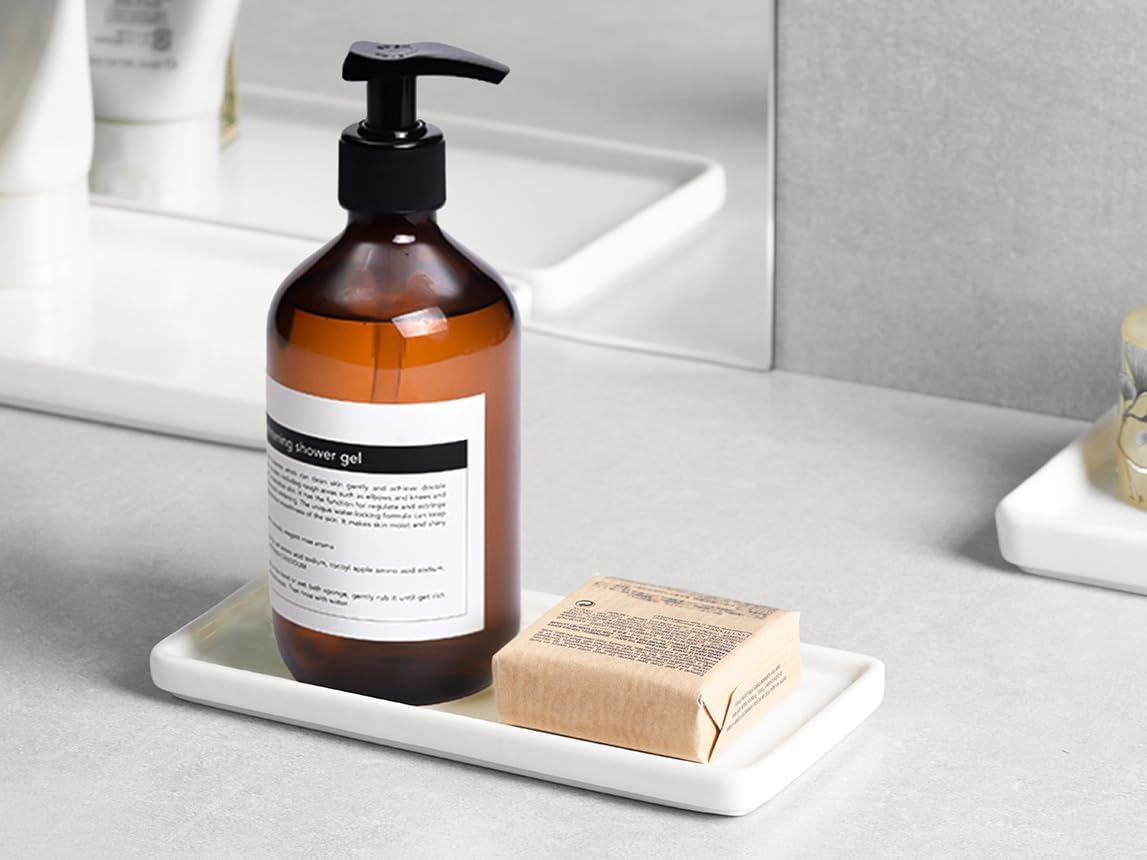 - GREAT AS GIFT: The ceramic sink tray can work as display tray for perfume,toothbrushes,lotion bottles,cosmetics,ornaments,jewelry,watches;Even a serving tray for food drinks and coffee;A special and useful gift for love collecting small objects