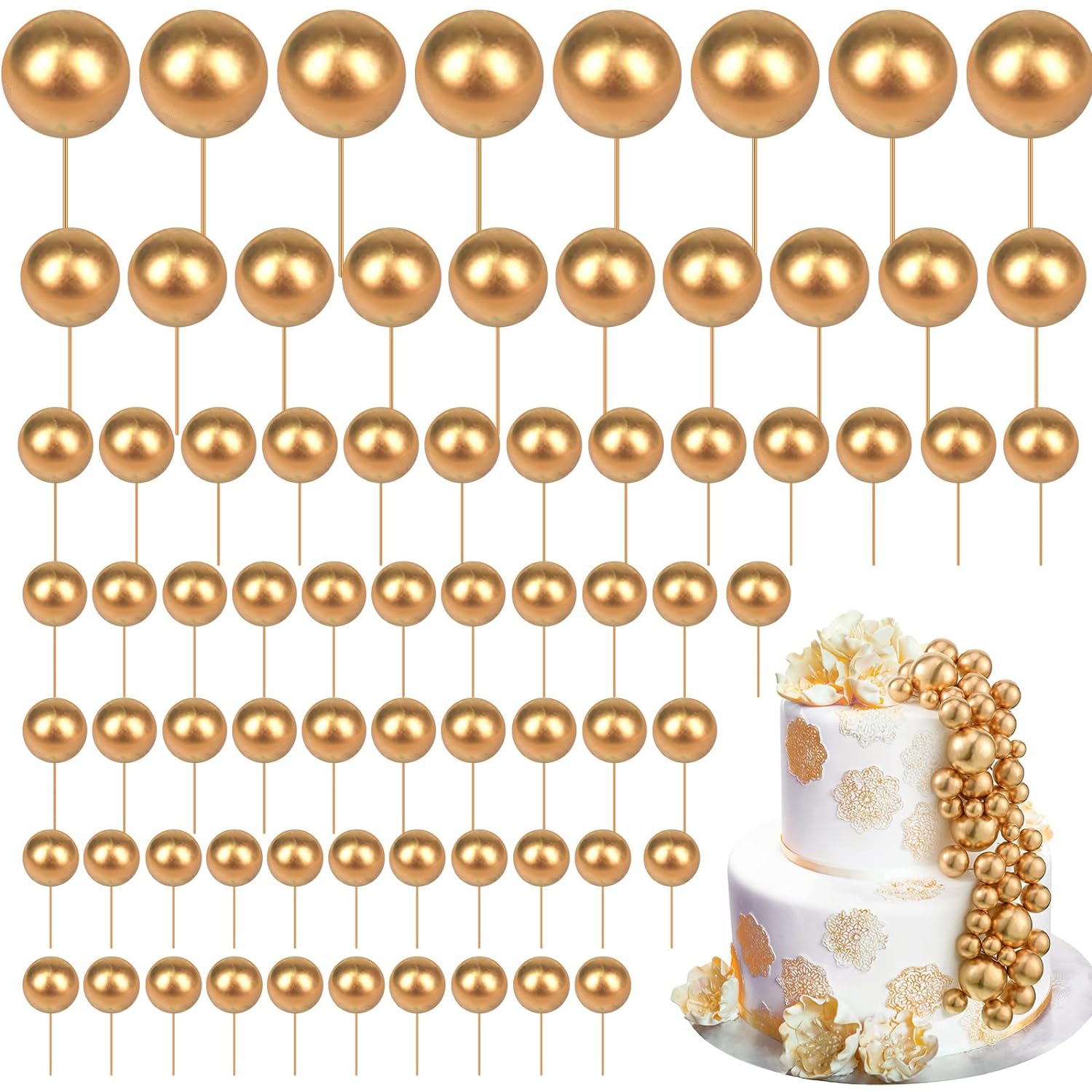 108 Pcs Balls Cake Topper DIY Cupcake Insert Foam Balloons for Cake Baking Wedding Anniversary Birthday Decoration(Gold,Multi Sizes)